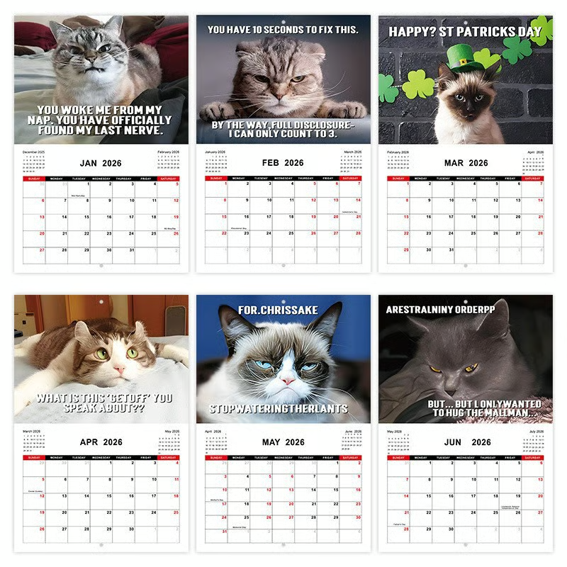 - Package: 1 x 2026 Pissed-Off Cats Calendar
