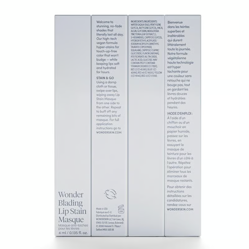 - Achieving a low-maintenance, long-wear look has never been easier with our Lip Stain Masque. Apply the Lip Stain Masque and let it set for 10 - 30 seconds, then wipe away with a damp towel or tissue. Youāll be left with a natural lip stain that wonāt budge or fade throughout the day, even when eating or drinking.