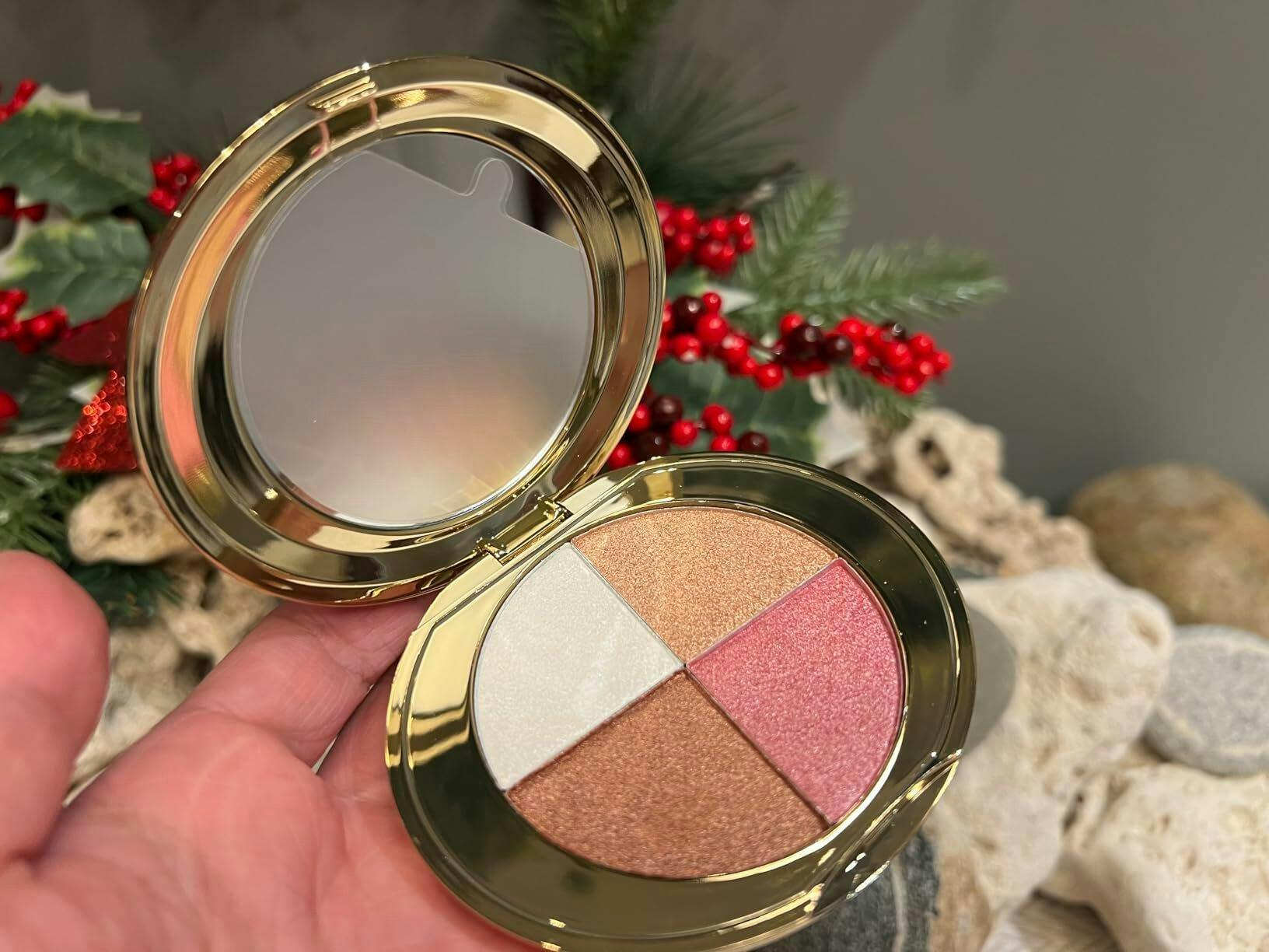 I was skeptical about an all-in-one palette but this blew me away! The highlighter gives such a natural glow, not chunky at all. Only wish the mirror was a bit bigger.