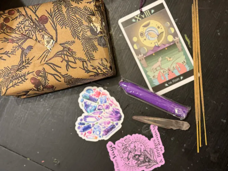 Note: package includes one brand-new Tarot OR Oracle deck, plus a selection of magical goodies.