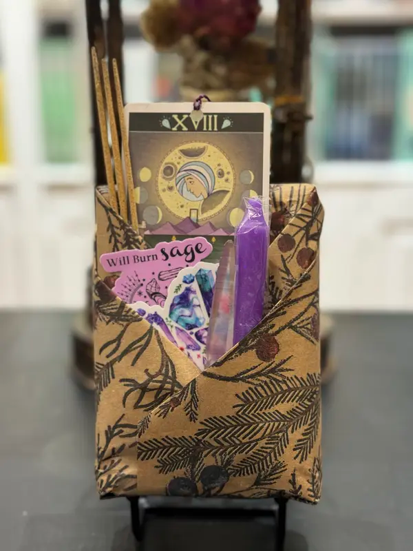 Your adventure begins with a beautifully packaged bundle, personally curated for you by the Apothecary team. Inside, you'll find your intuitively chosen Tarot or Oracle Deck, each brimming with ancient wisdom and symbols that invite you to unlock the mysteries of your heart's desires. But that's not all – we've included a delightful assortment of extras to elevate your mystical journey.