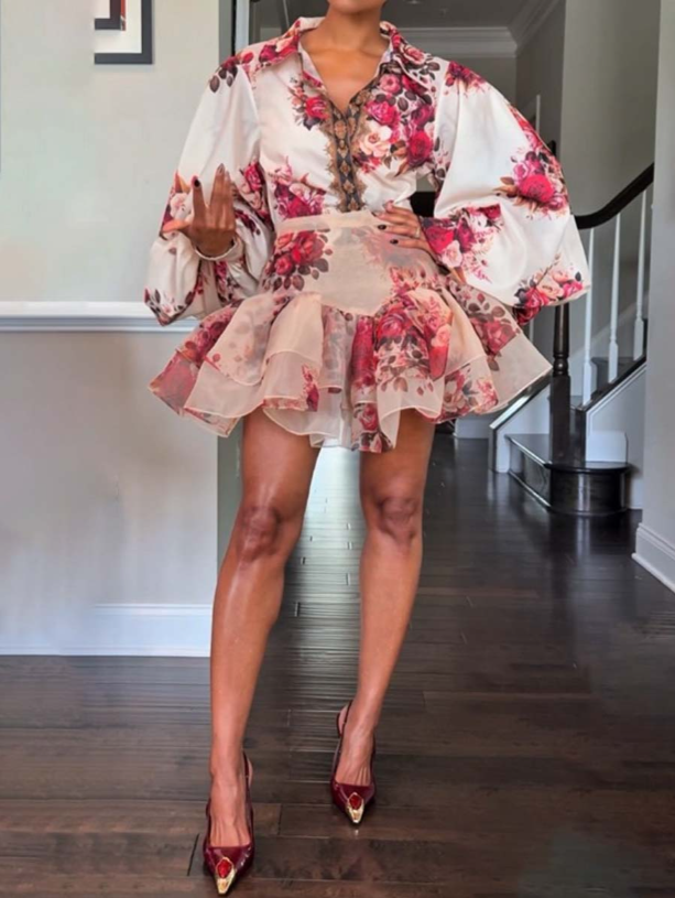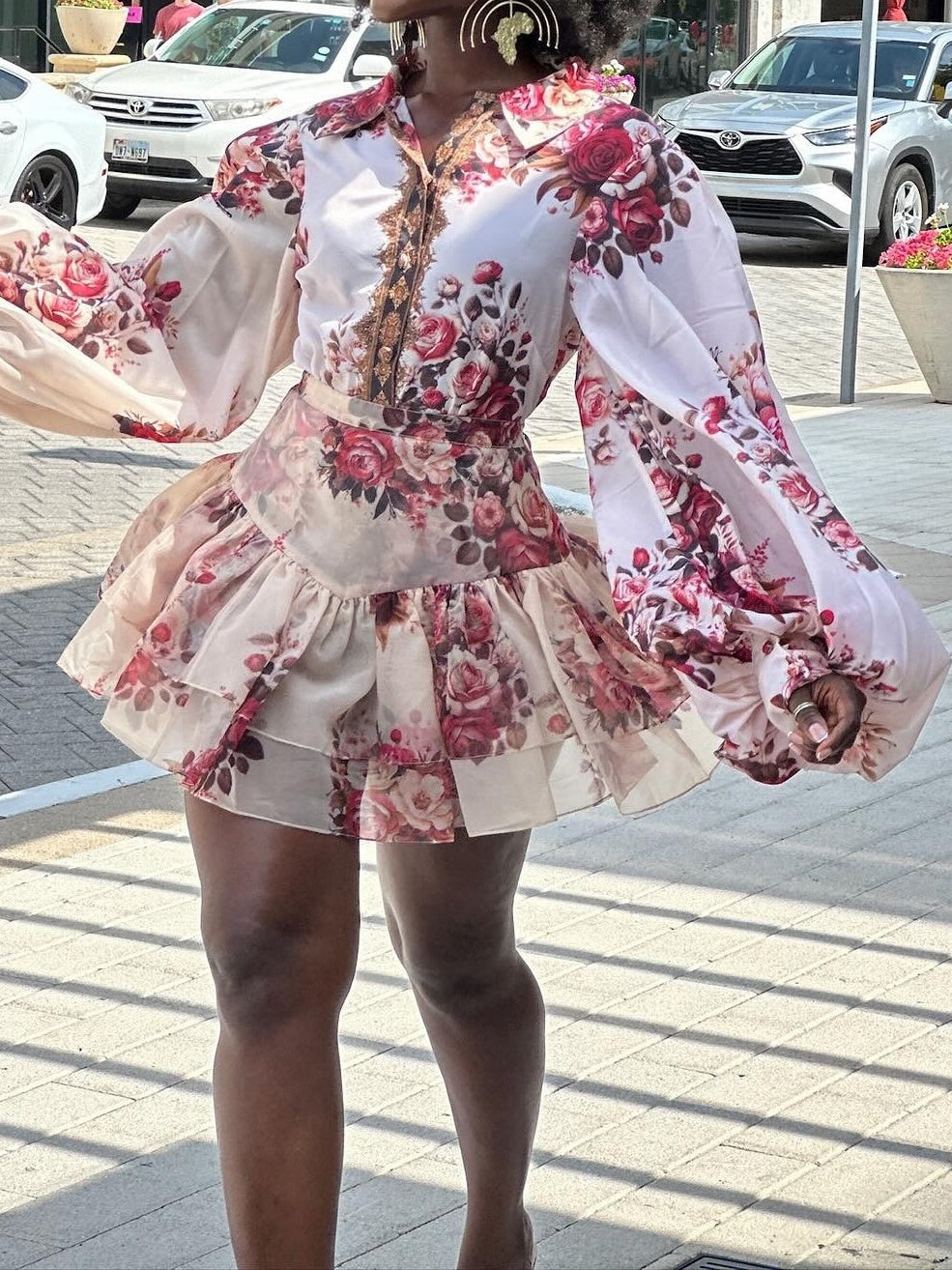 Step into floral bliss with this enchanting tiered ruffle dress. Featuring long sleeves and a soft floral pattern in cream, pink, this dress brings a playful yet elegant vibe. Perfect for any occasion, it offers a charming blend of style and whimsy for a fresh, feminine look!