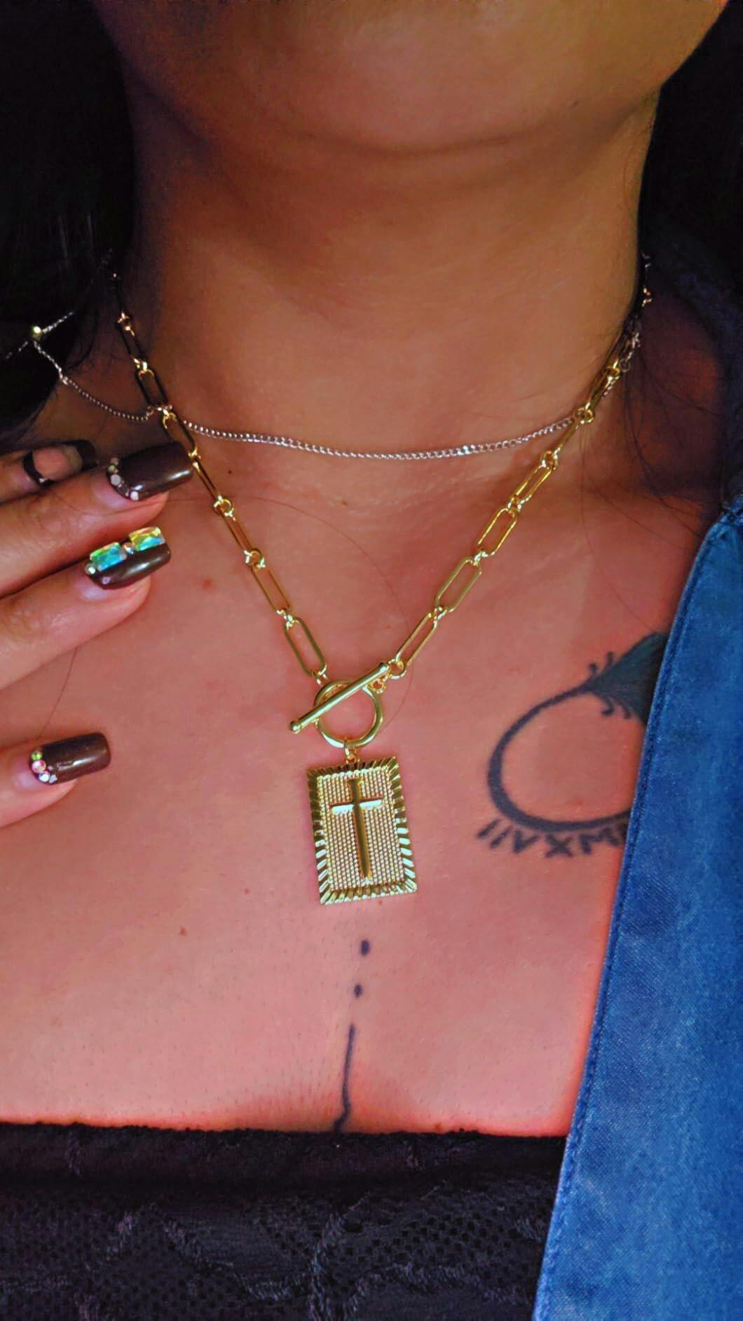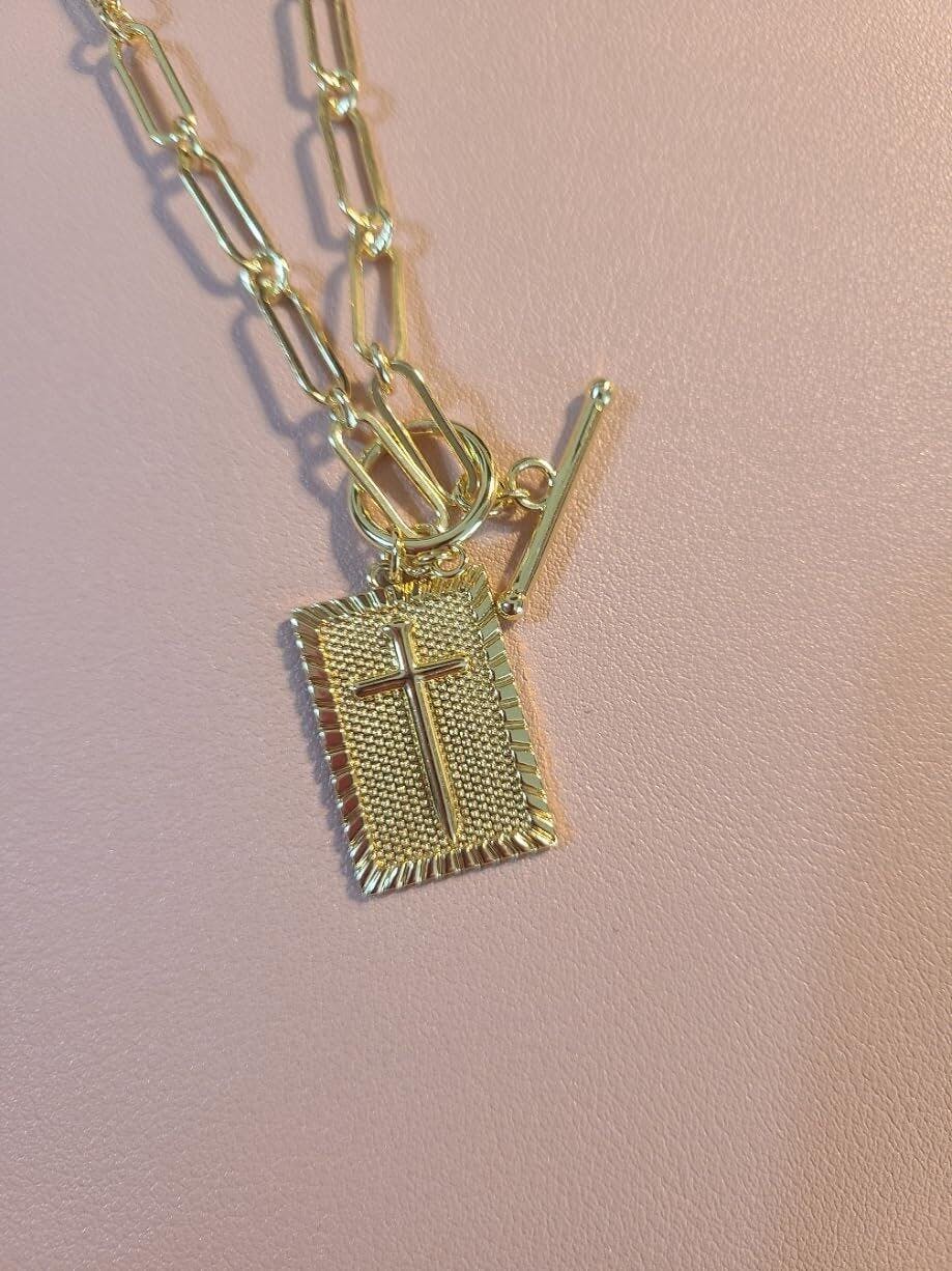 Cross Pendant Paperclip Chain Necklace