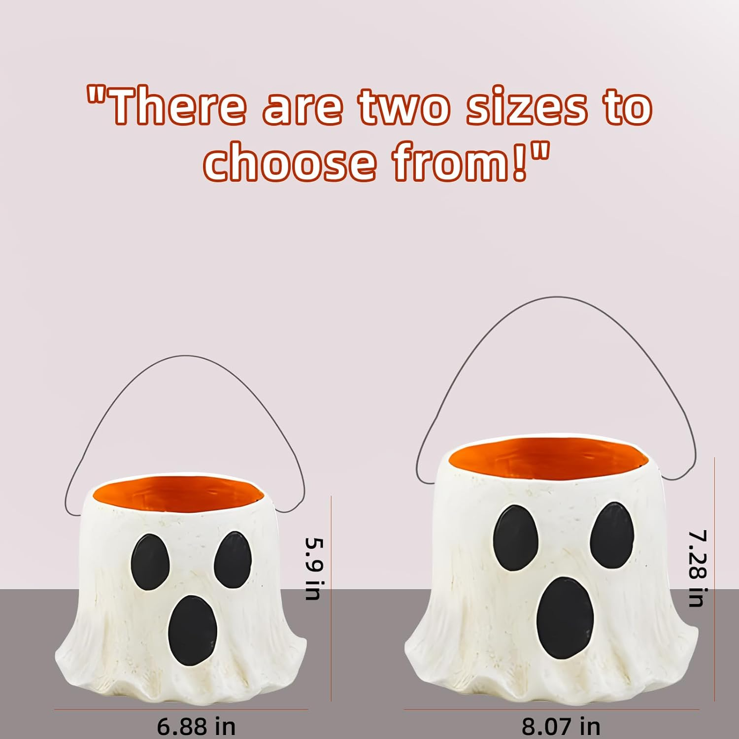 Ghost Bucket Size : We offer two sizes of ghost candy buckets - Medium (5.9" tall), Large (7.87" tall).You can choose the right size to create your own unique Halloween decorations!