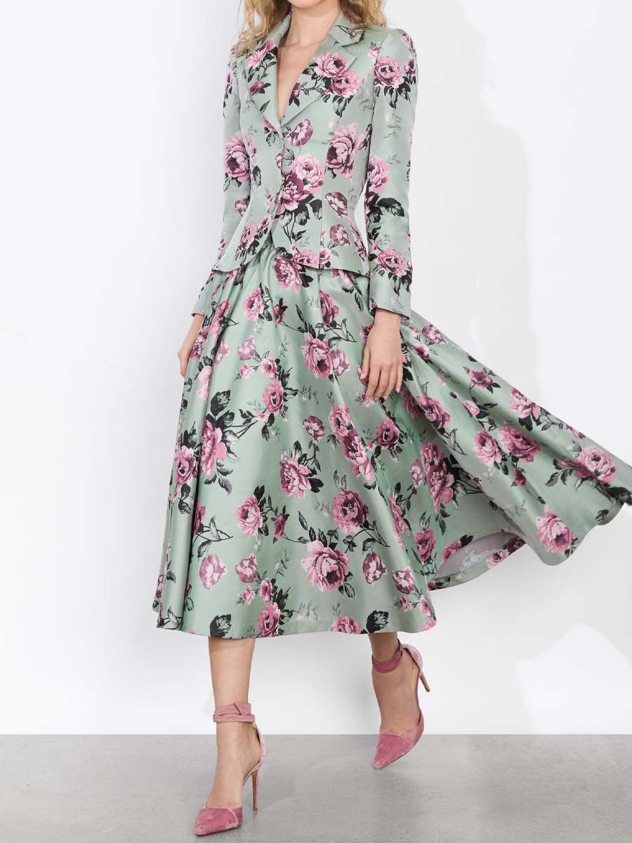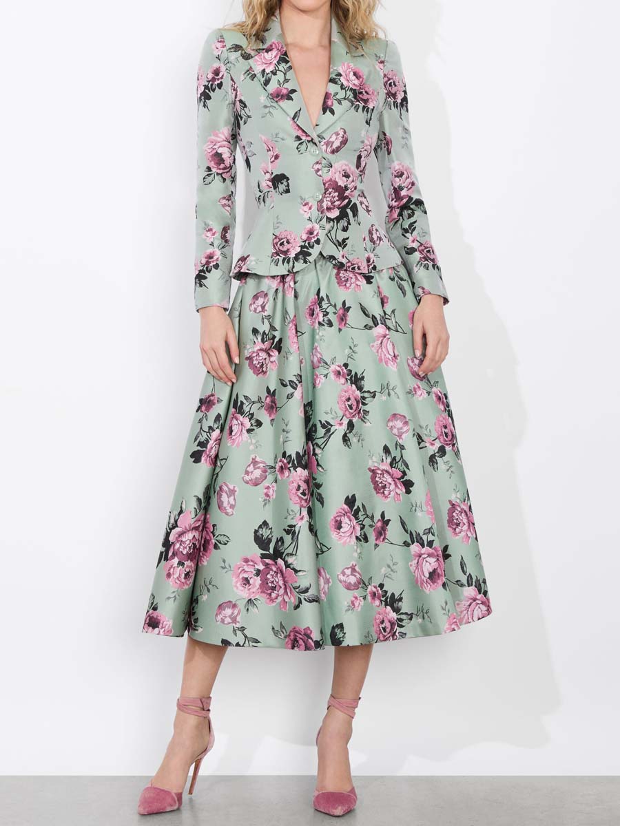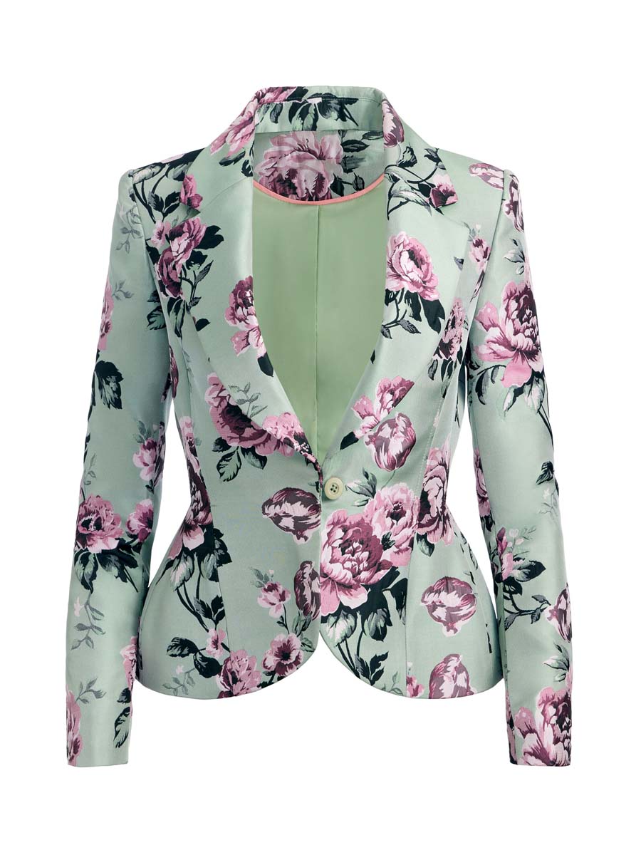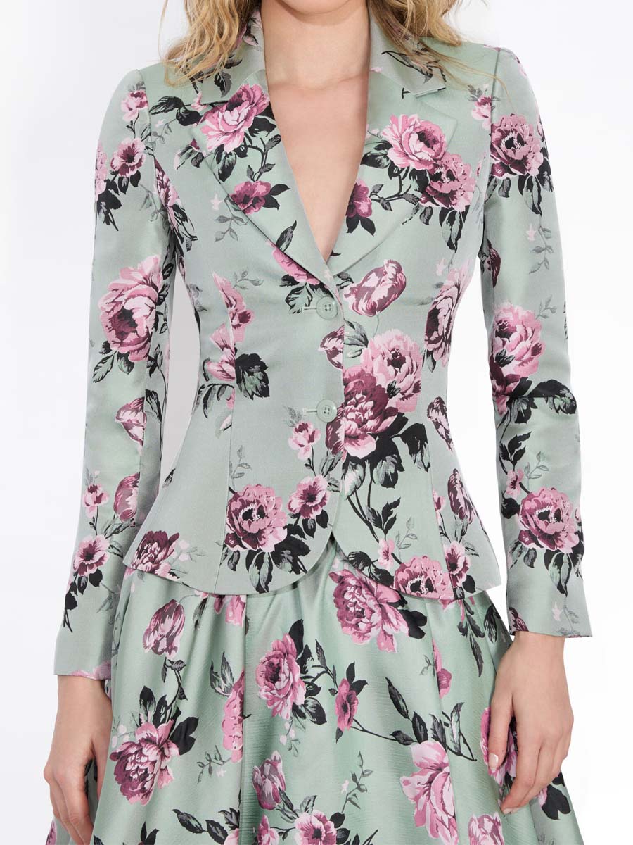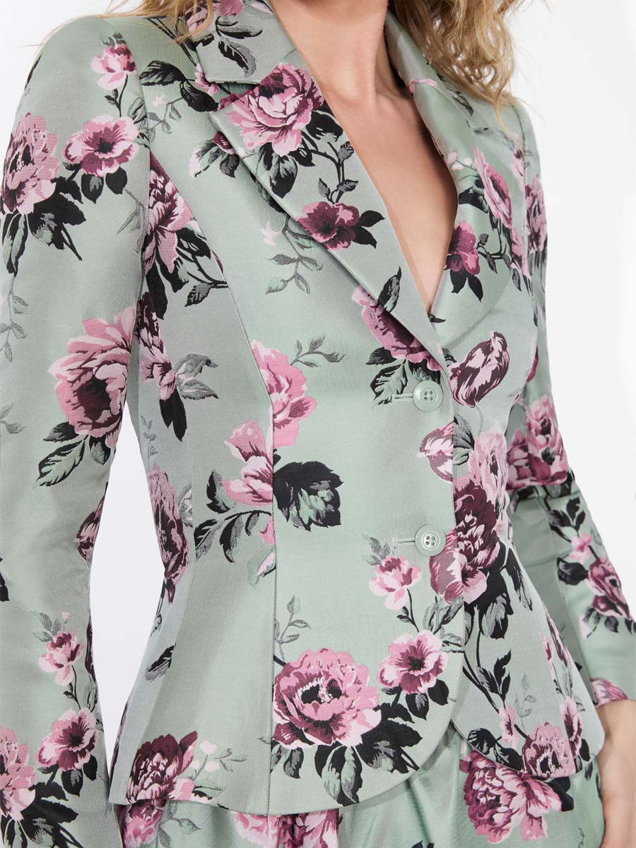 Reminiscent of the iconic bar jacket, our Falmepretty sculpted blazer has a waist-defining shape. Molded curves are tailored from a luxury printed jacquard, giving you an hourglass shape. Sophisticated and timeless, wear it with cigarette pants and nothing underneath for an ultra-chic night-out look.