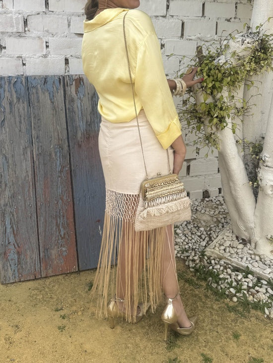 Skirt with shawl-effect fringes.
