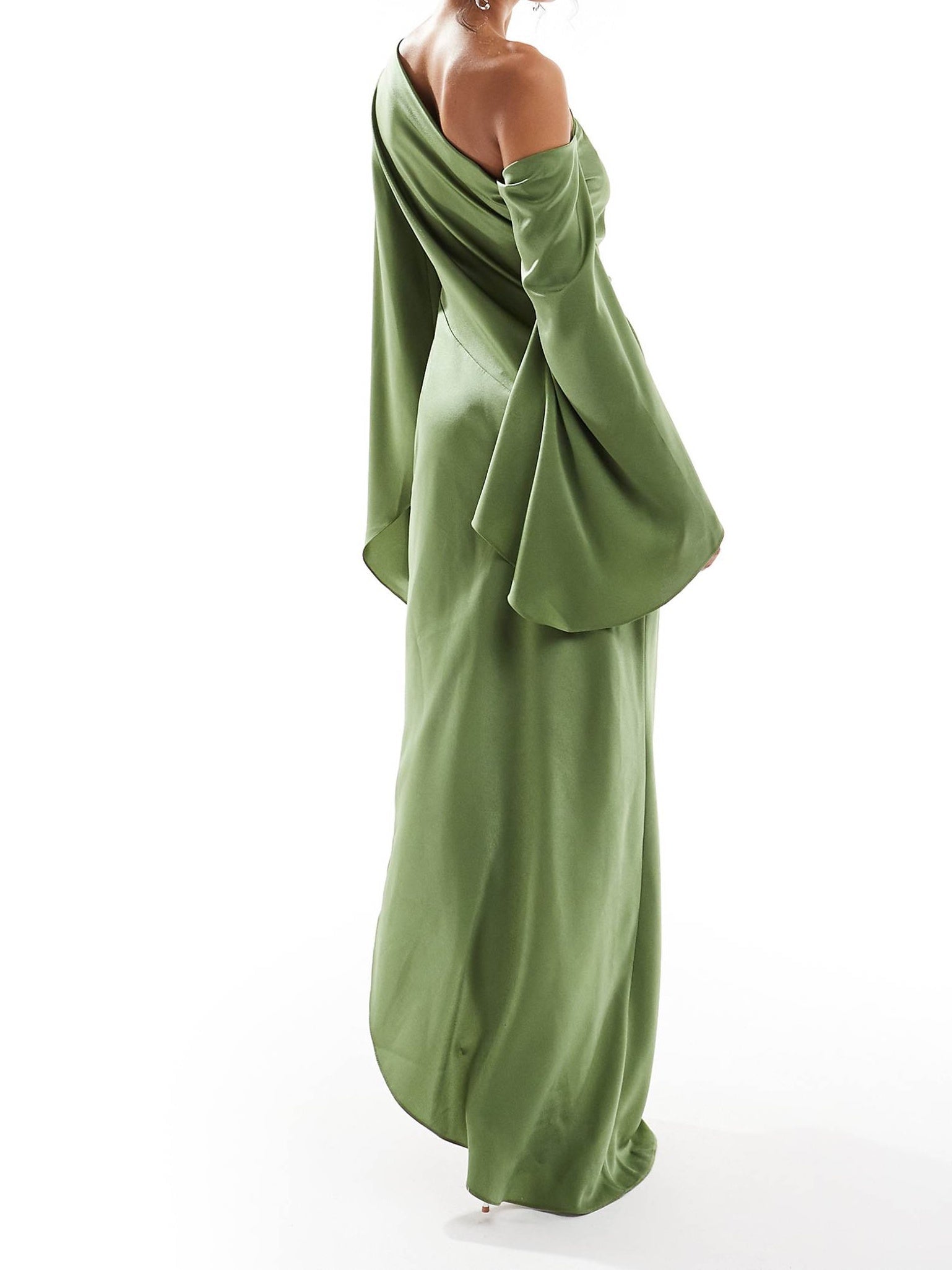 The "Asymmetric One Shoulder Trumpet Sleeve Slit Maxi Dress" is designed for comfortable warmth and elegant style. Combining fashion with function, this dress from Flamepretty features an asymmetrical slit design that is both warm and versatile.