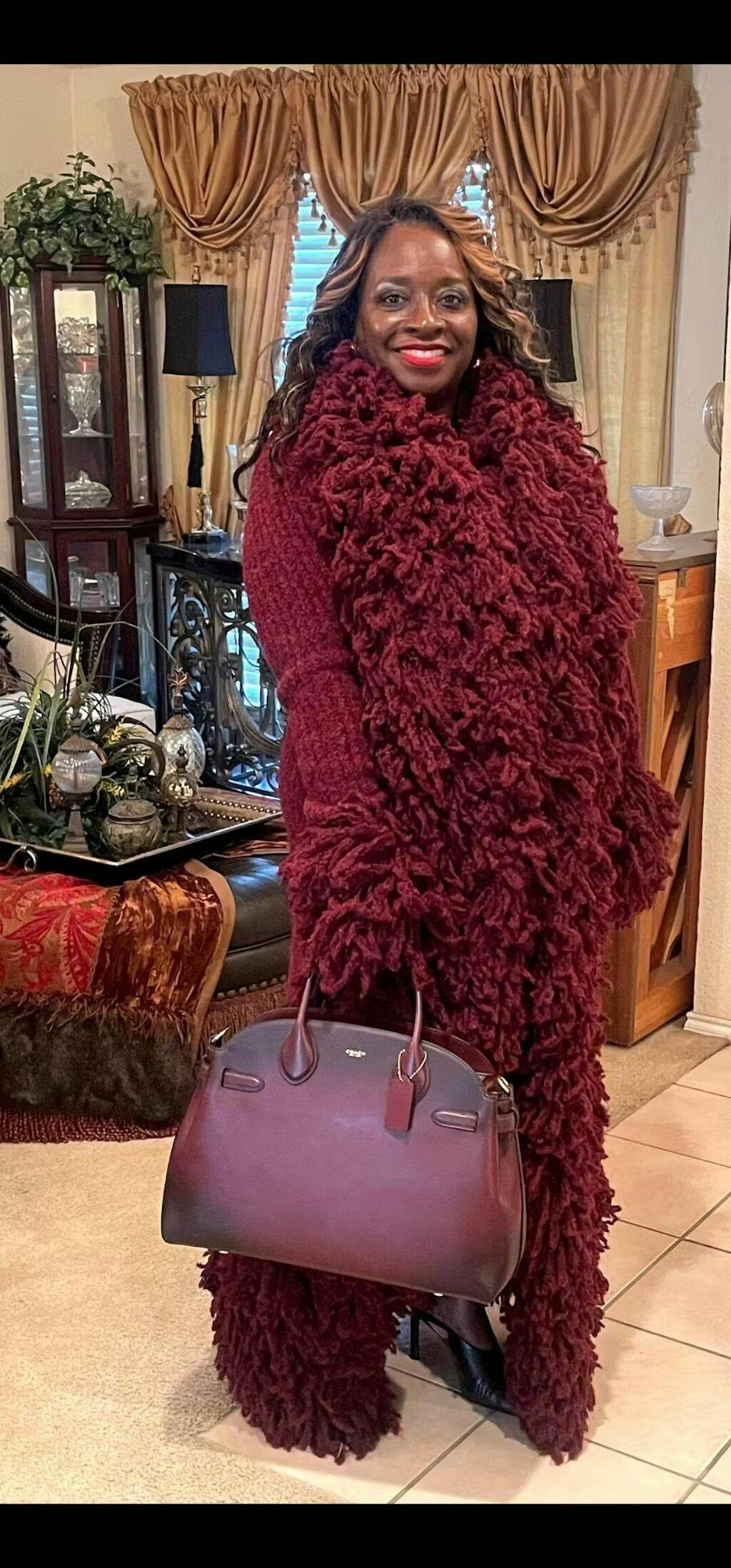 This knit coat is simply gorgeous - it is EVERYTHING and more in person and I am so pleased with this purchase! I will definitely purchase the burgundy one when it is restocked.