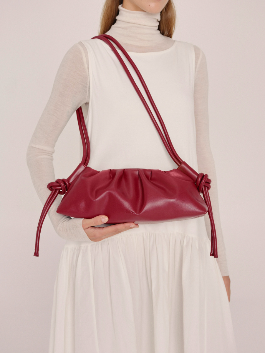 Featuring a unique double-handle system, the Dumpling Bag can be carried in multiple ways, with adjustable knots adding a personalized touch.