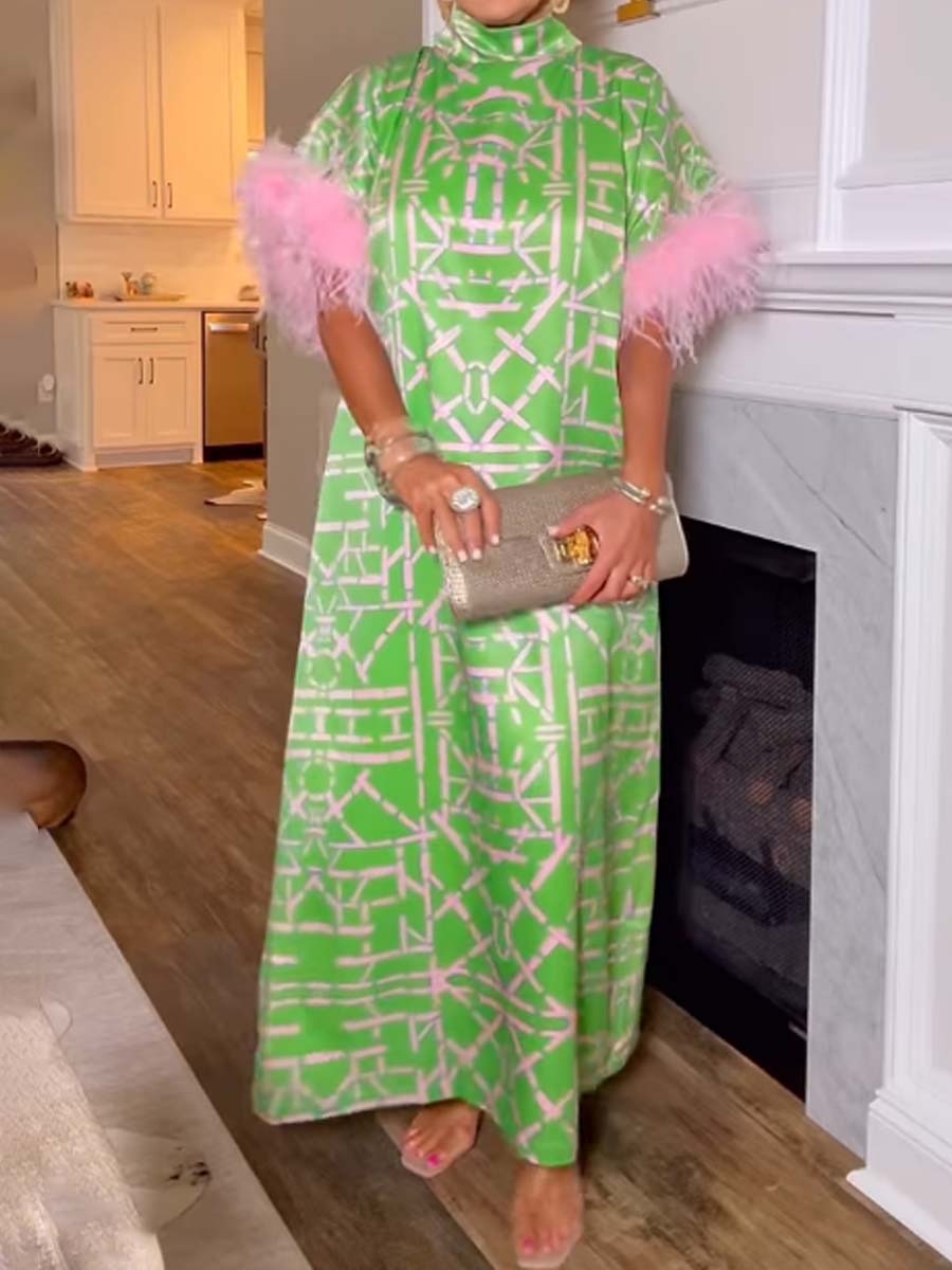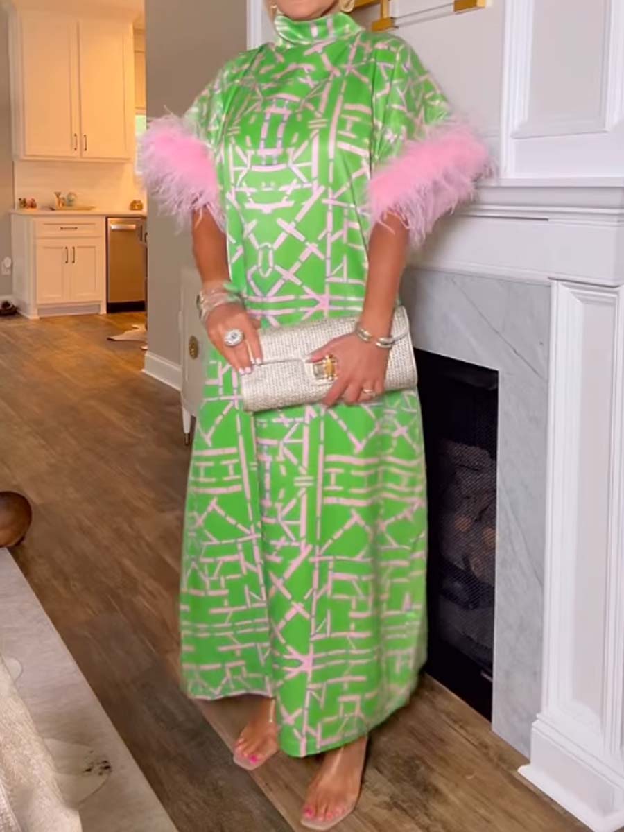 Feather Patchwork Printed Loose Dress