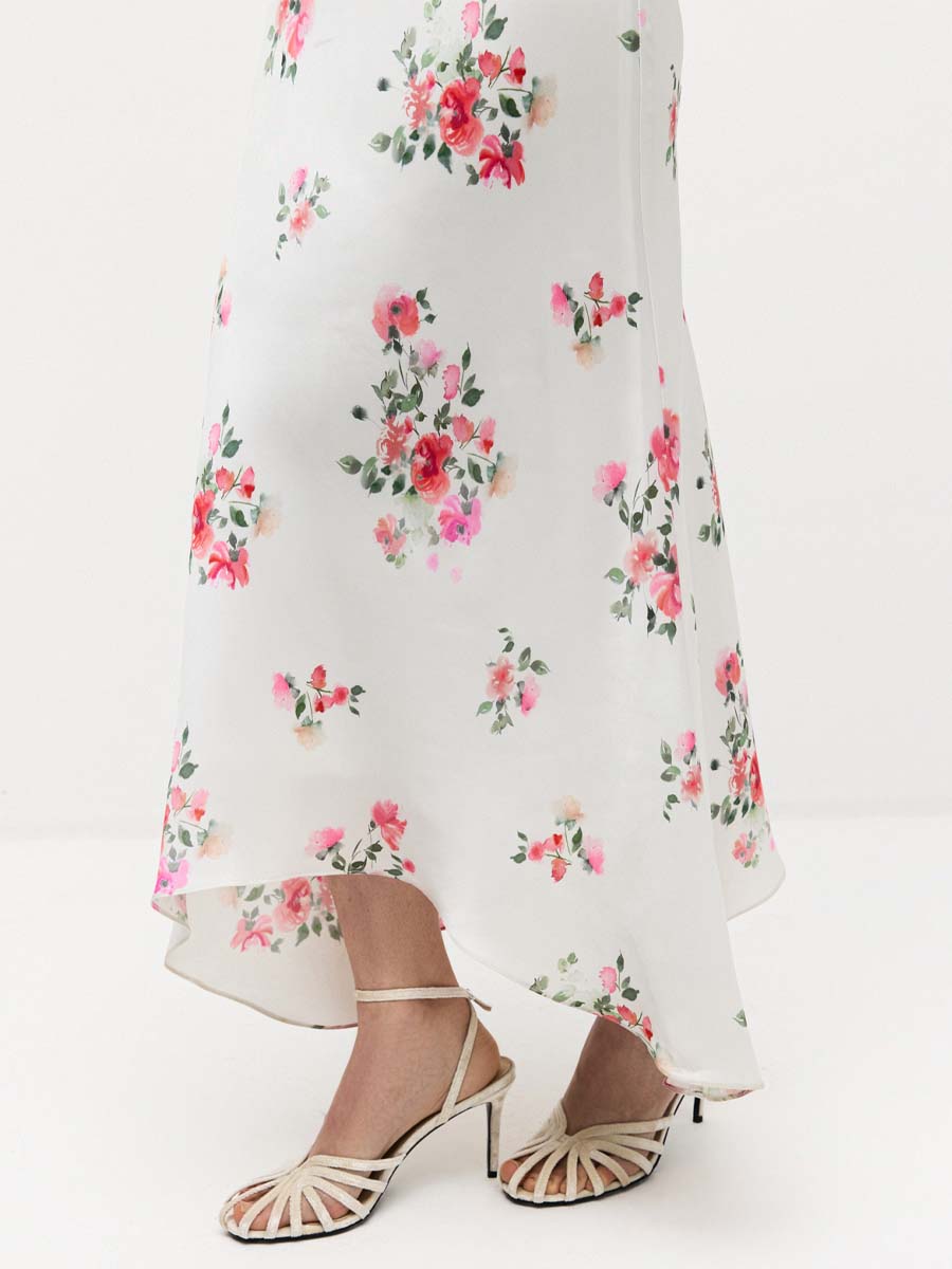 The lovely flowers dress is a delicate and graceful model for everyday life in the city or vacation trips. Length and watercolor floral print are the formula for an ideal model in which you want to conquer and catch admiring glances. The flowing cut gives the dress femininity and airiness, and the fitted silhouette will emphasize your curves. A necessary item for those moments when just one dress can make your appearance memorable - it and your person are enough.