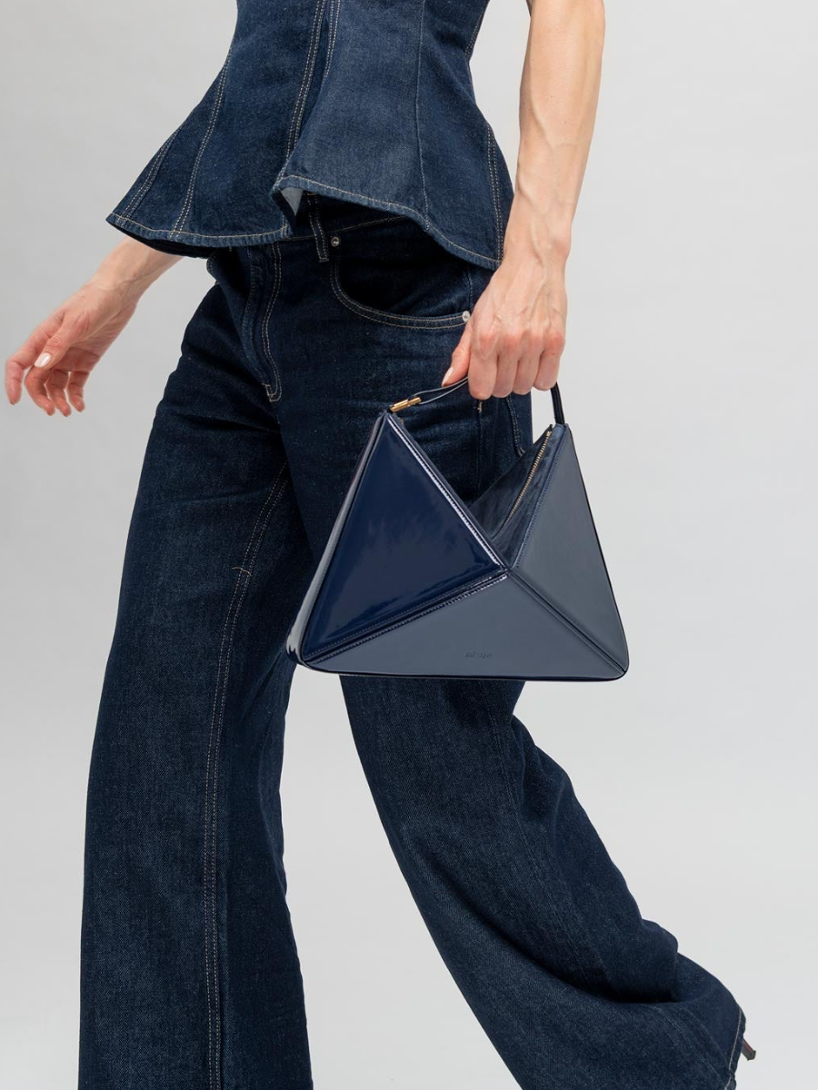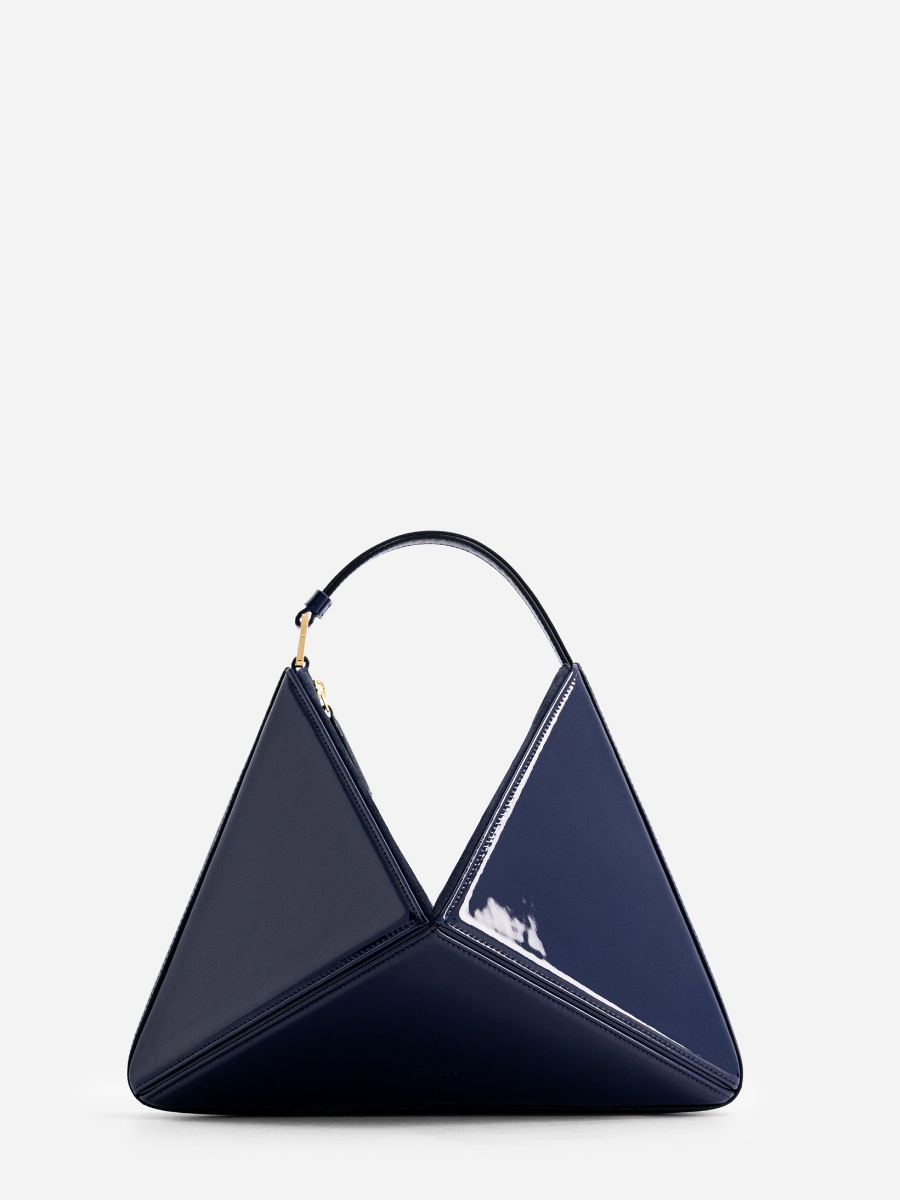 Our architectural, origami inspired shoulder bag, now has a new dimension. It can be converted into a wrist bag just with a quick move. The shoulder strap can easily be removed, so you can slung it from your wrist or use as a clutch. It has plenty of room inside for your essentials including a large phone, small wallet, and 300 ml water bottle. Made from smooth leather and has a suede top with two-way zip fastening. Interior features two slip pockets.