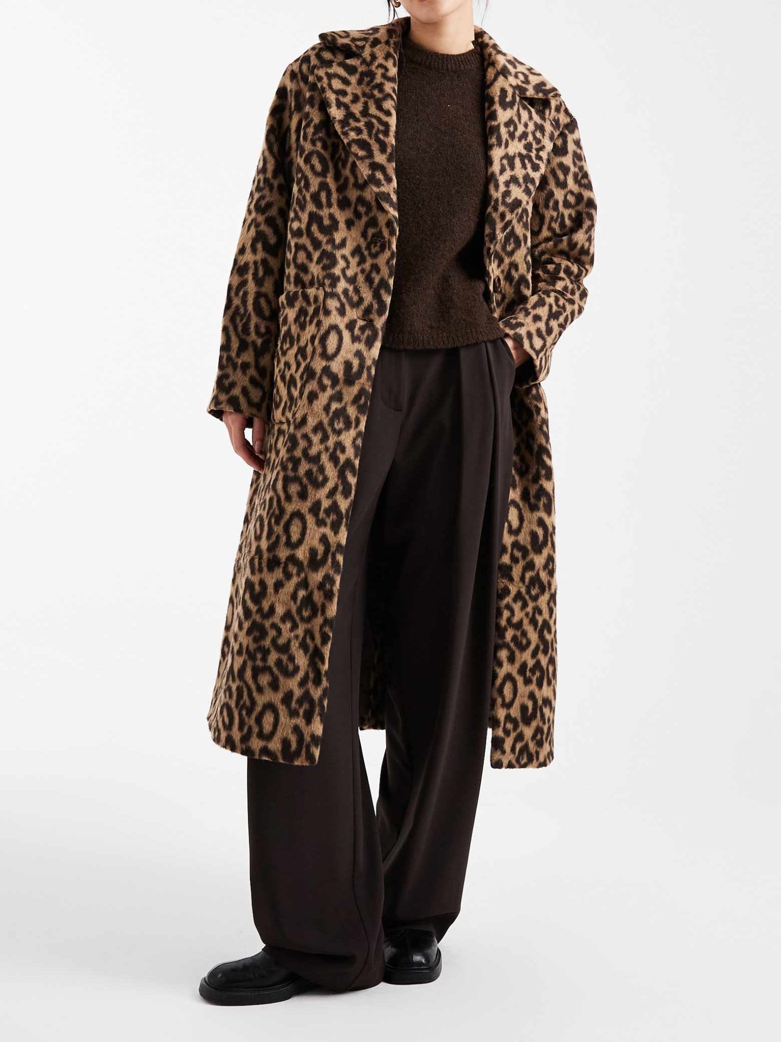 Formal Maxi Coat In Leopard Print