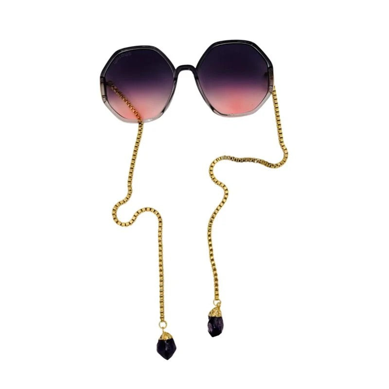 - Lens width: 70mm, bridge: 14mm, chain earrings: 10.25in, chain necklace: 34in