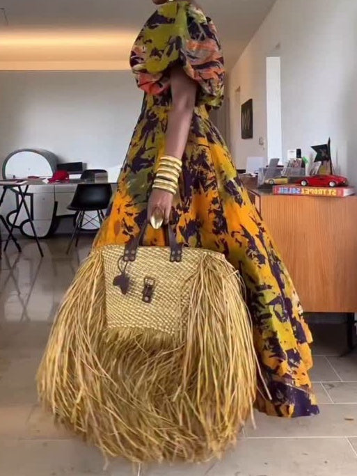 Make a statement with the Flamepretty — your go-to luxury beach bag turned wearable art. Each fringe is hand-tied and each bag is hand-dyed by artisans in Ghana. It’s bold, beautiful, and unapologetically African. When you’re not turning heads with it on vacation, it hangs beautifully on your wall as decor.