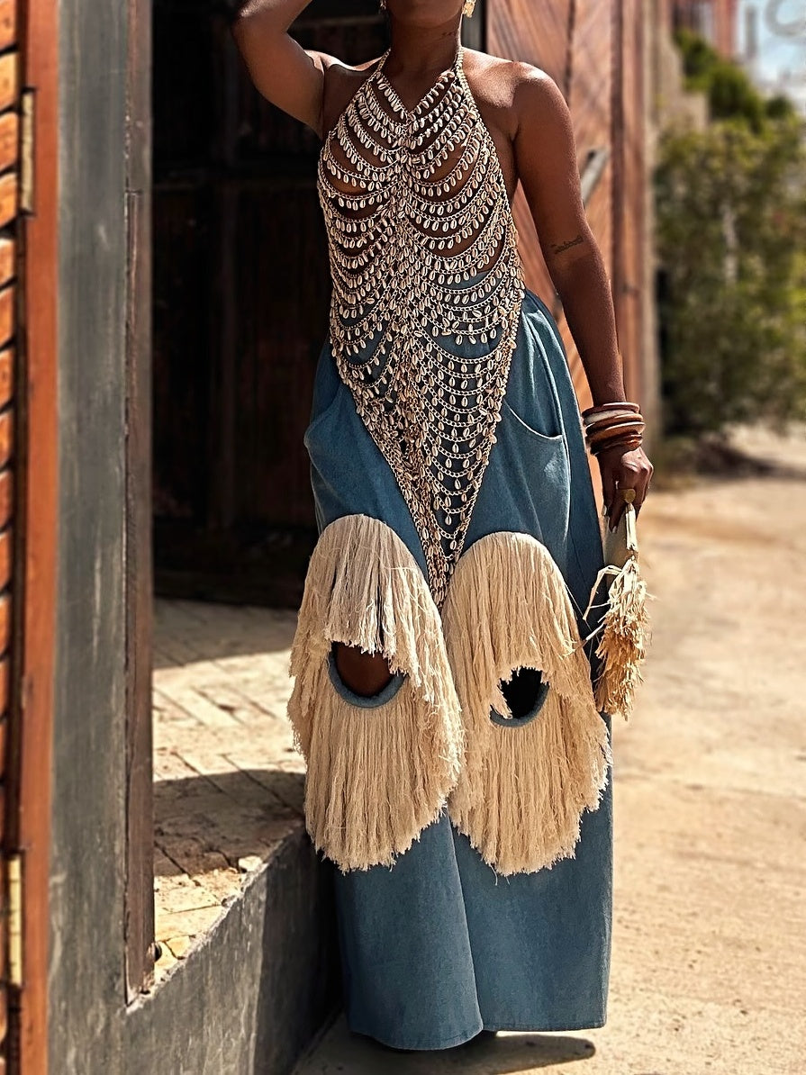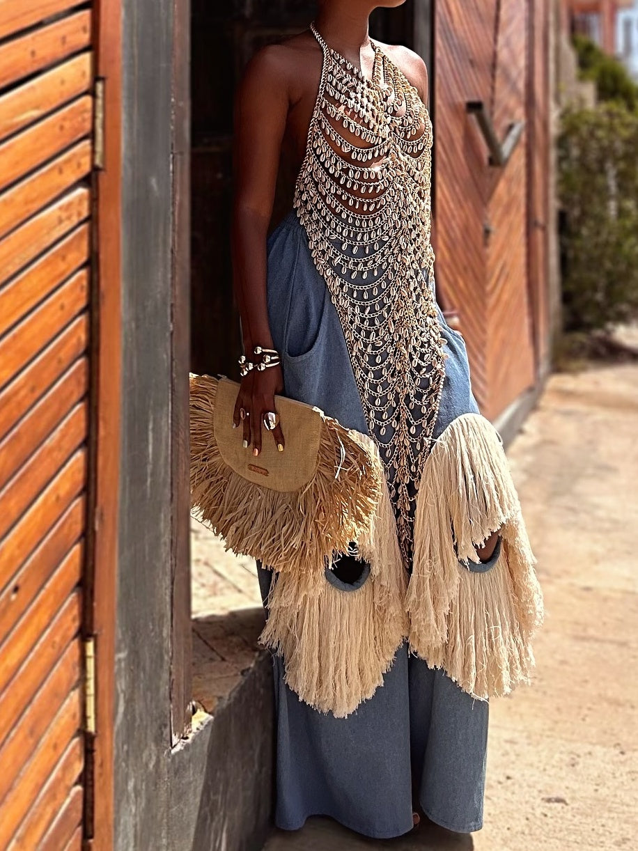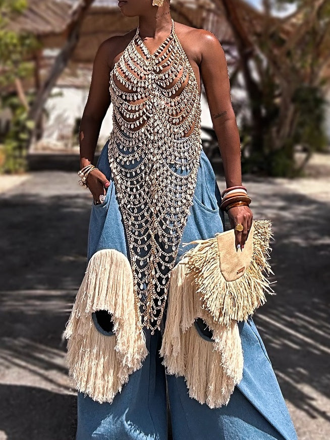Luxury Handmade Chain Top + Fringe Pants