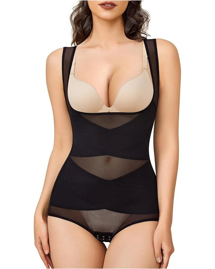 U-shape push up breast bodysuit. This all-in-one design of shapewear bodysuit tummy control features a u-shape push-up that enhances the bust line and lifts the buttocks, while the wide shoulder straps provide stress-free support. The unique front u-type design of mesh bodysuit gathers and lifts the breasts, creating a perfect cleavage. Also pair it with your favorite bra and enjoy the comfort of wide shoulder straps designed to relieve pressure and provide all-day wearability.