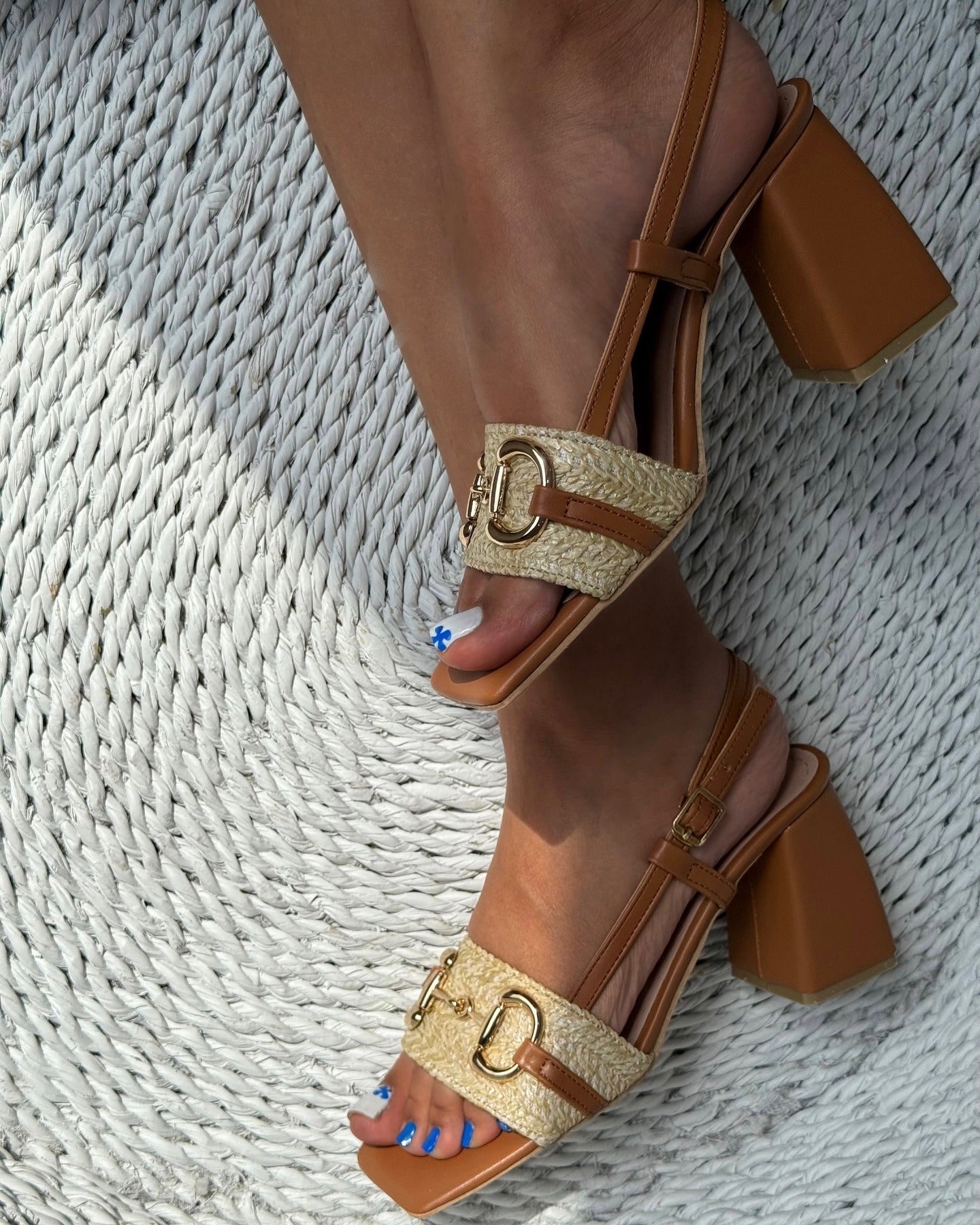Metallic Accessories Braided Thick Heel Pumps