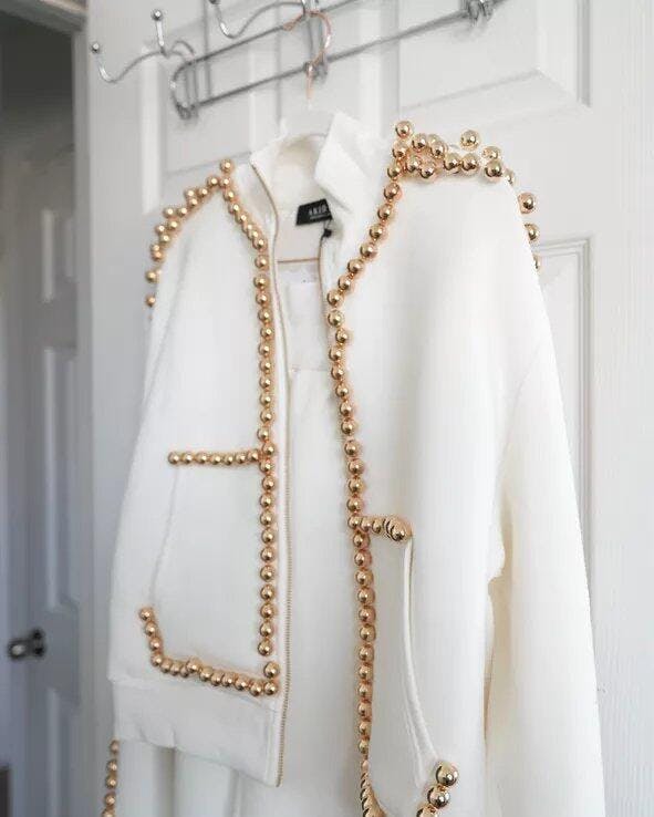 Rich auntie look. Buy as a suit. Pants are very delicate though.