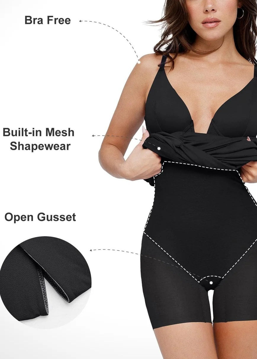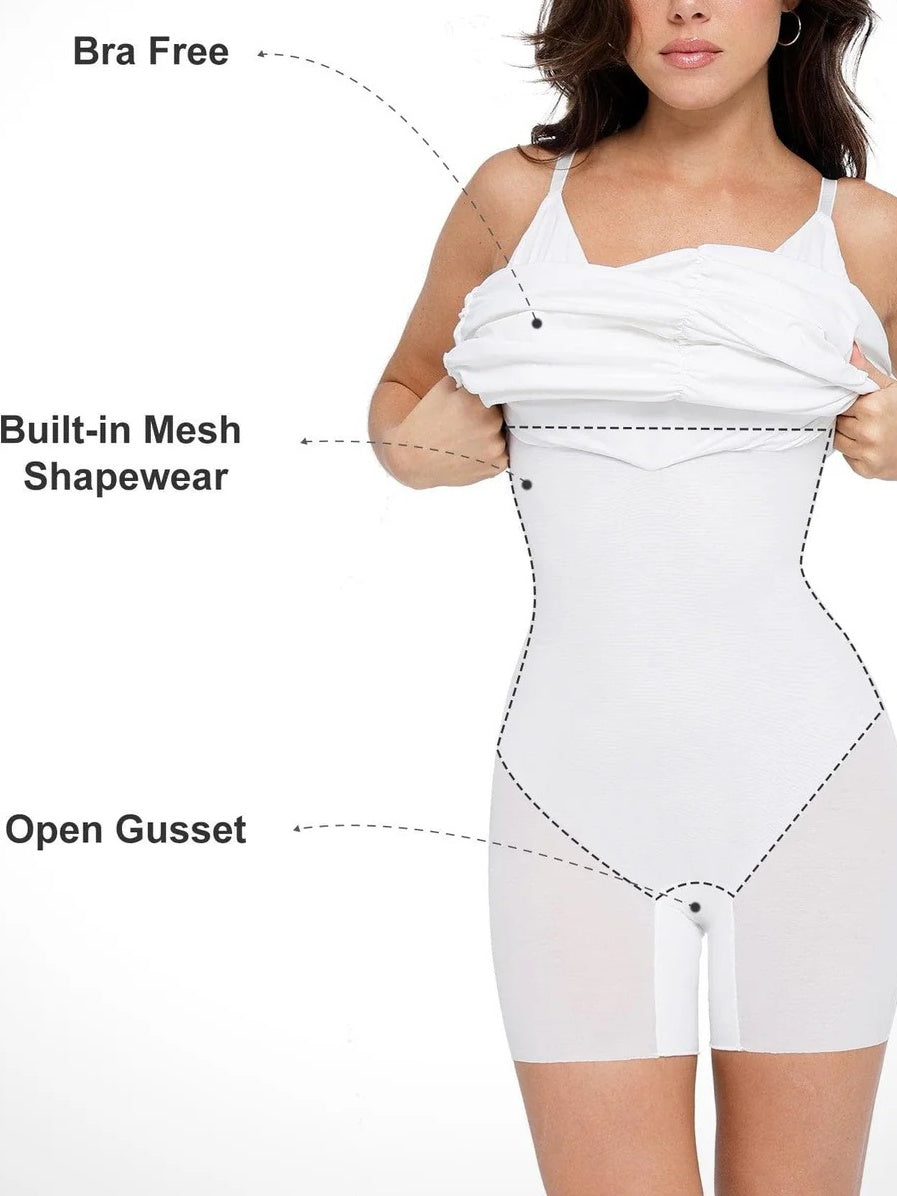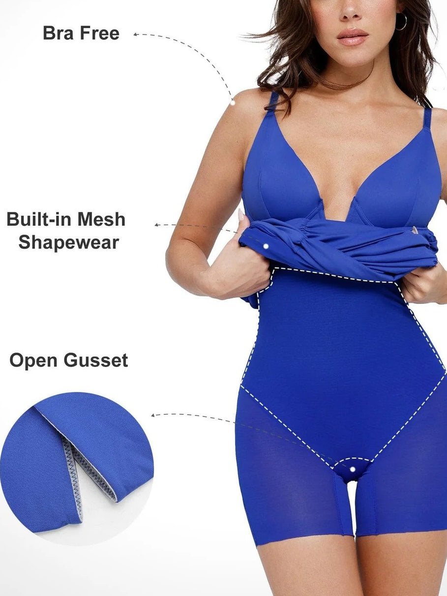 Waist and Abdominal Compression: Built-in body shaping mesh enhances and flattens the tummy area, providing a sleek figure.