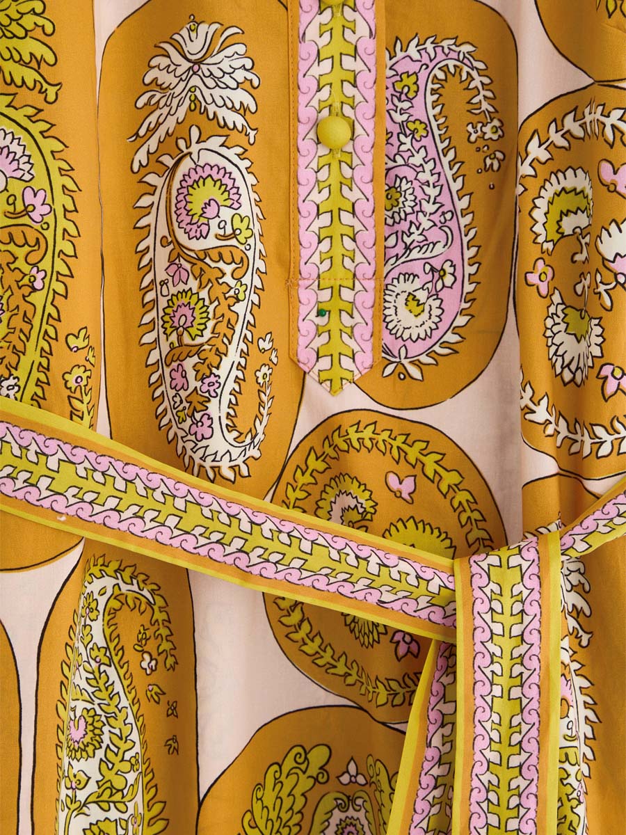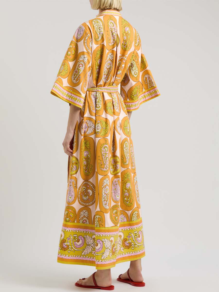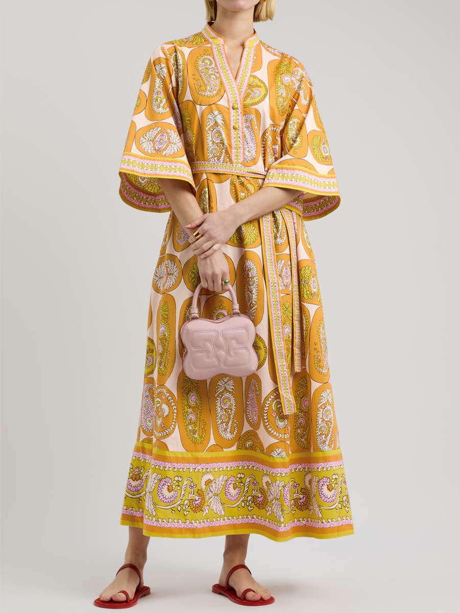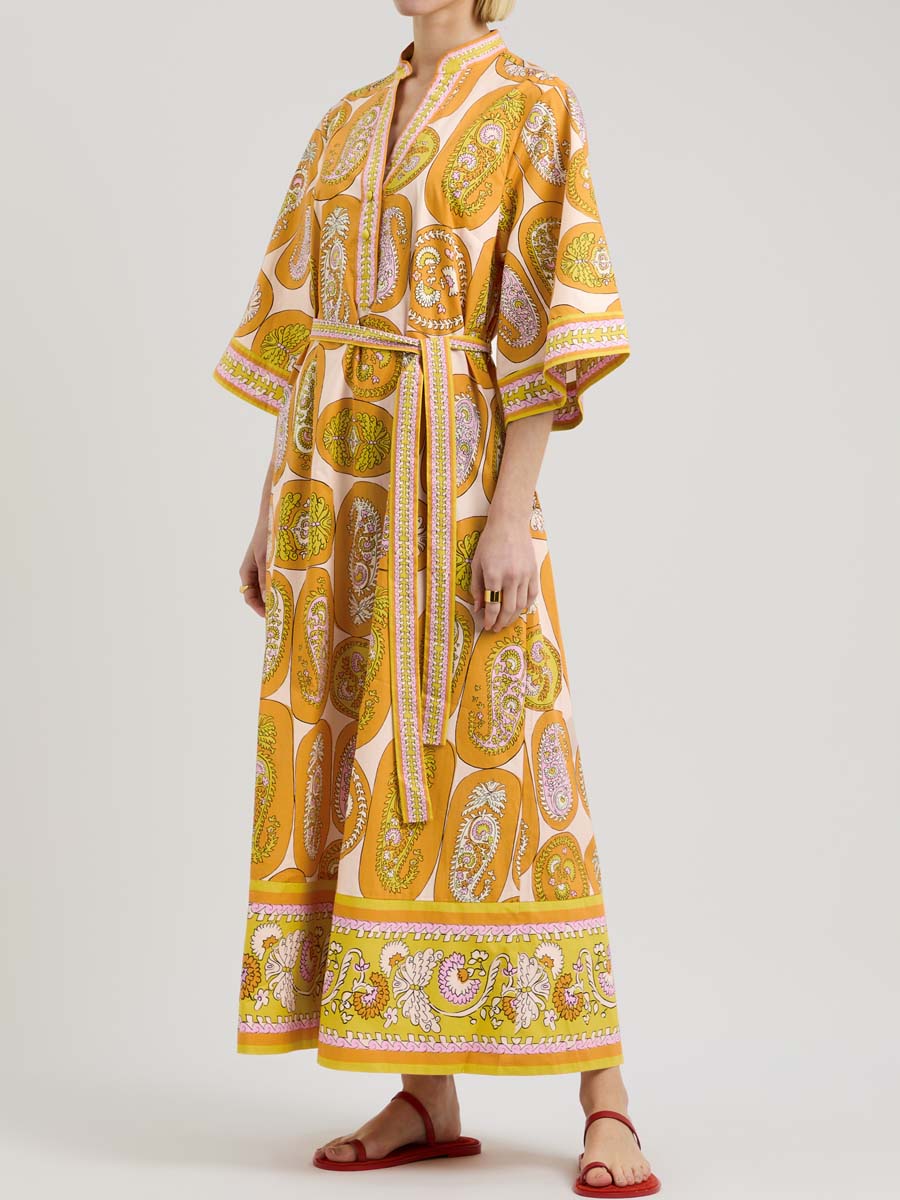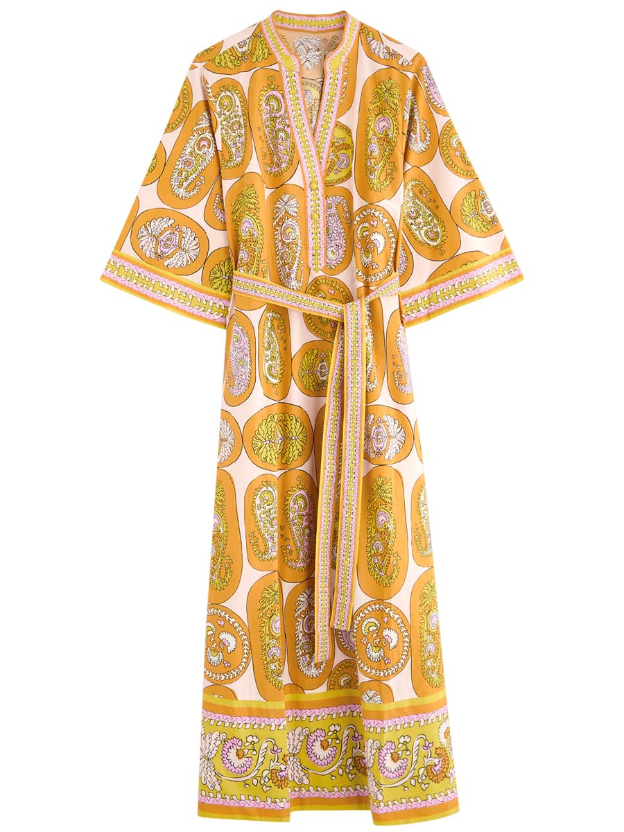 Printed Belted V Neck Maxi Dress