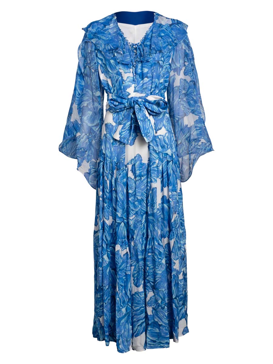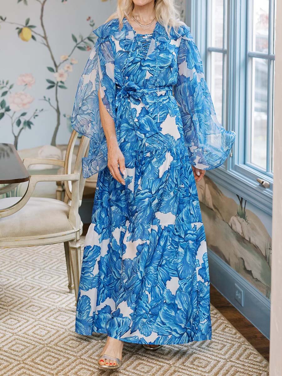 Your suitcase is never complete without this showstopper piece. Our Dress in the vibrant Tahitian Hibiscus print features a stunning lace up collar, flounce sleeves, and single georgette silk fabric to assure you’re always feeling easy and breezy. We’re sporting this look to the destination weddings, the warm weather holiday dinners, and the new restaurant openings. Add a white heeled sandal, a white clutch, and the hottest reservation on the island and you’re ready for the night of your dreams.