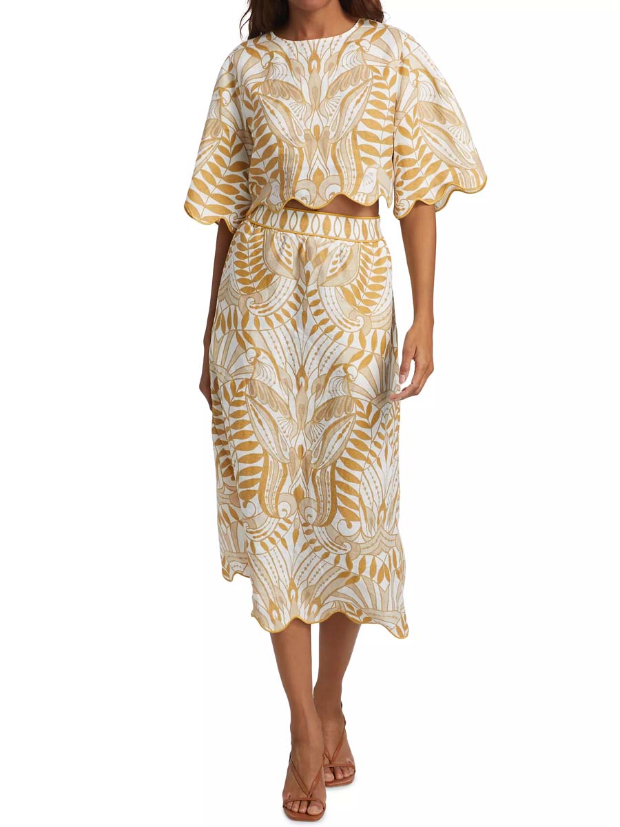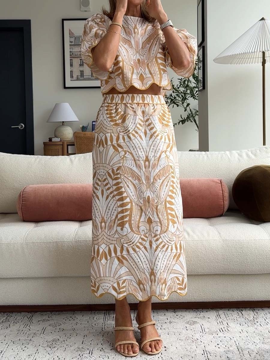 Embrace timeless elegance with our Premium Linen Midi Skirt. Crafted from responsible materials, it features a graceful midi length adorned with intricate lace patterns in warm mustard and white hues. The flattering silhouette and rich textures evoke a sense of playful sophistication, perfect for any occasion. This piece invites warmth and joy into your wardrobe, ensuring you'll stand out with its unique charm.