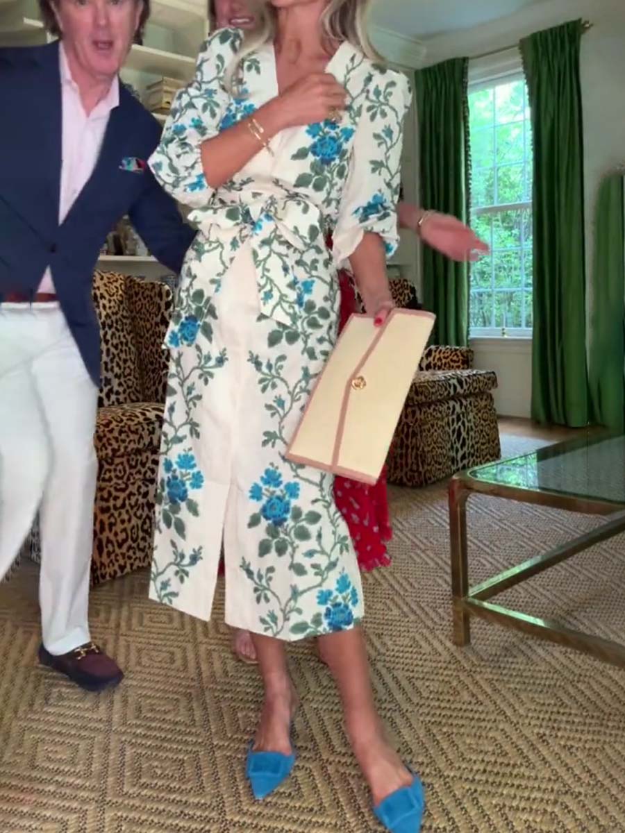 The Flamepretty dress is a lightweight staple that takes you from day to night with ease and elegance. Flattering details like the v-neckline, slight puff sleeve, and removable tie waist make this a more refined wardrobe staple. The dress is covered in a thoughtfully placed pattern that takes inspiration from vintage prints in pretty shades of blue and green. Wear with your favorite pair of heels, mini clutch, and gold jewelry for a put-together look.