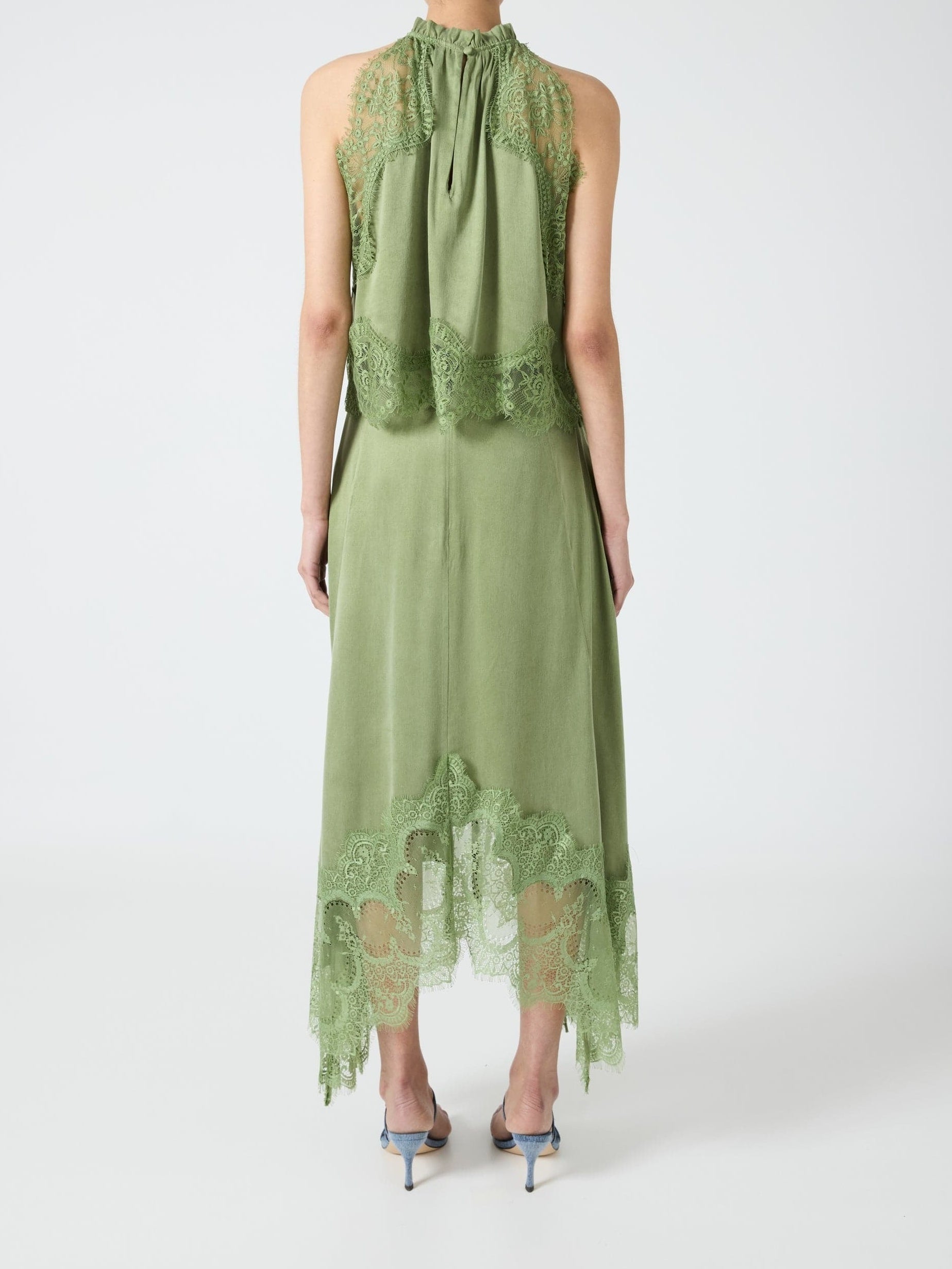 Effortlessly sophisticated, the Lace Skirt is a vision of movement and texture. Cut from premium sandwashed Cupro, this midi-length design cascades into a voluminous handkerchief hem, framed by intricate lace detailing. The sheer lace inserts lend an air of refinement, while the relaxed fit ensures graceful drape and wearability. Style it with the Lace Top for a seamlessly coordinated ensemble.