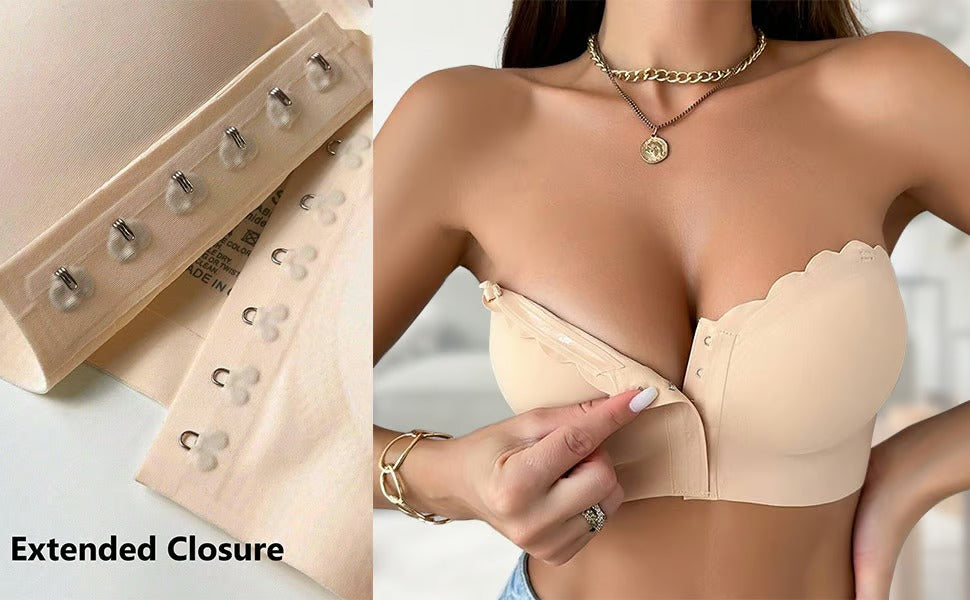 Seamless Front Closure Strapless Bandeau Bra