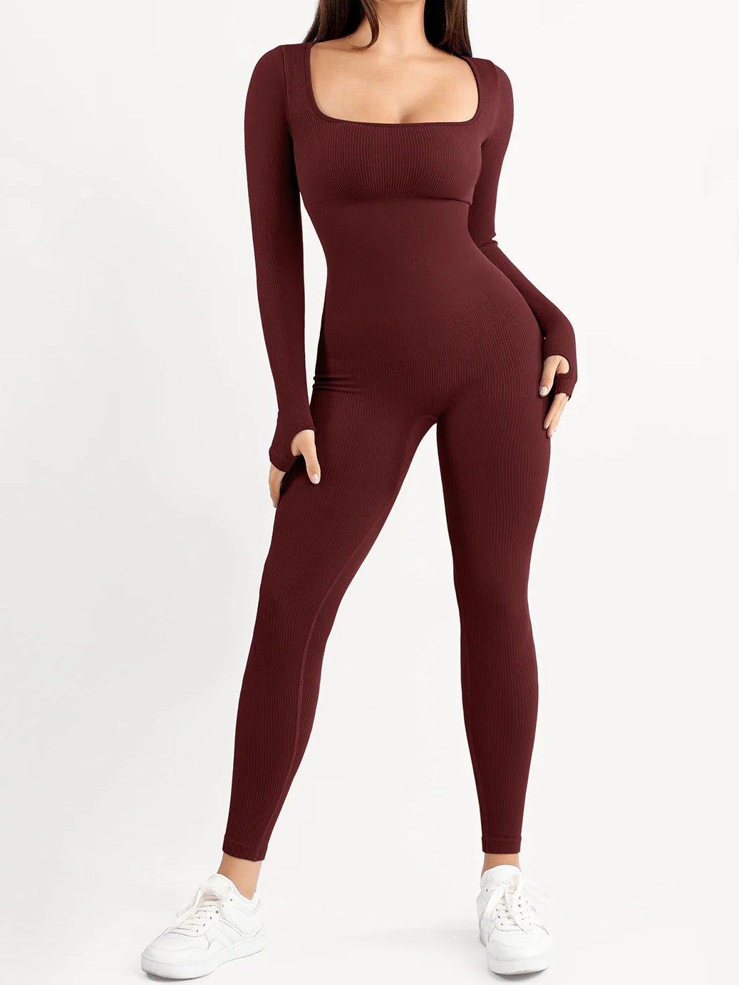Shapewear Seamless Thumb Hole Long Sleeve Jumpsuit