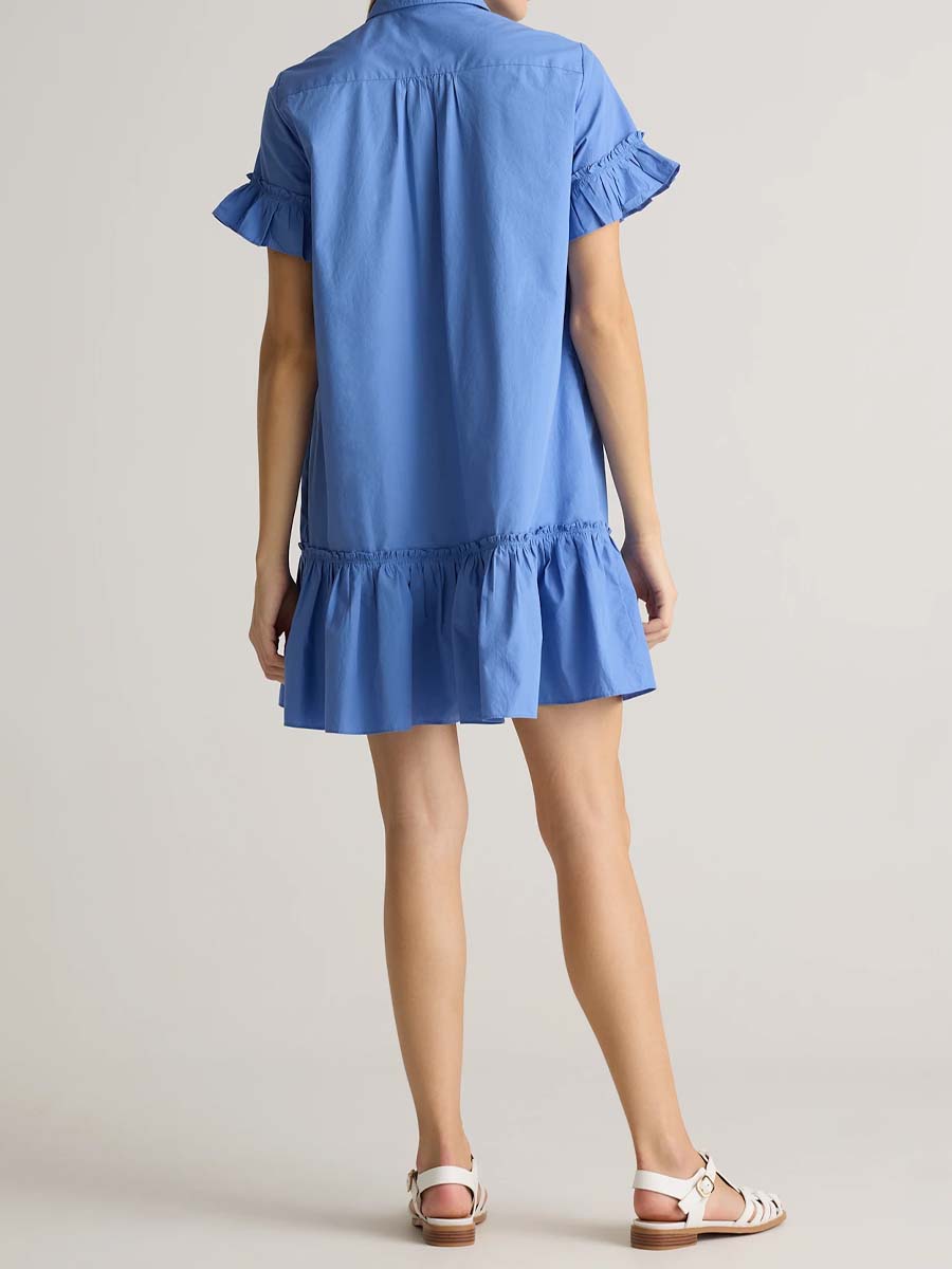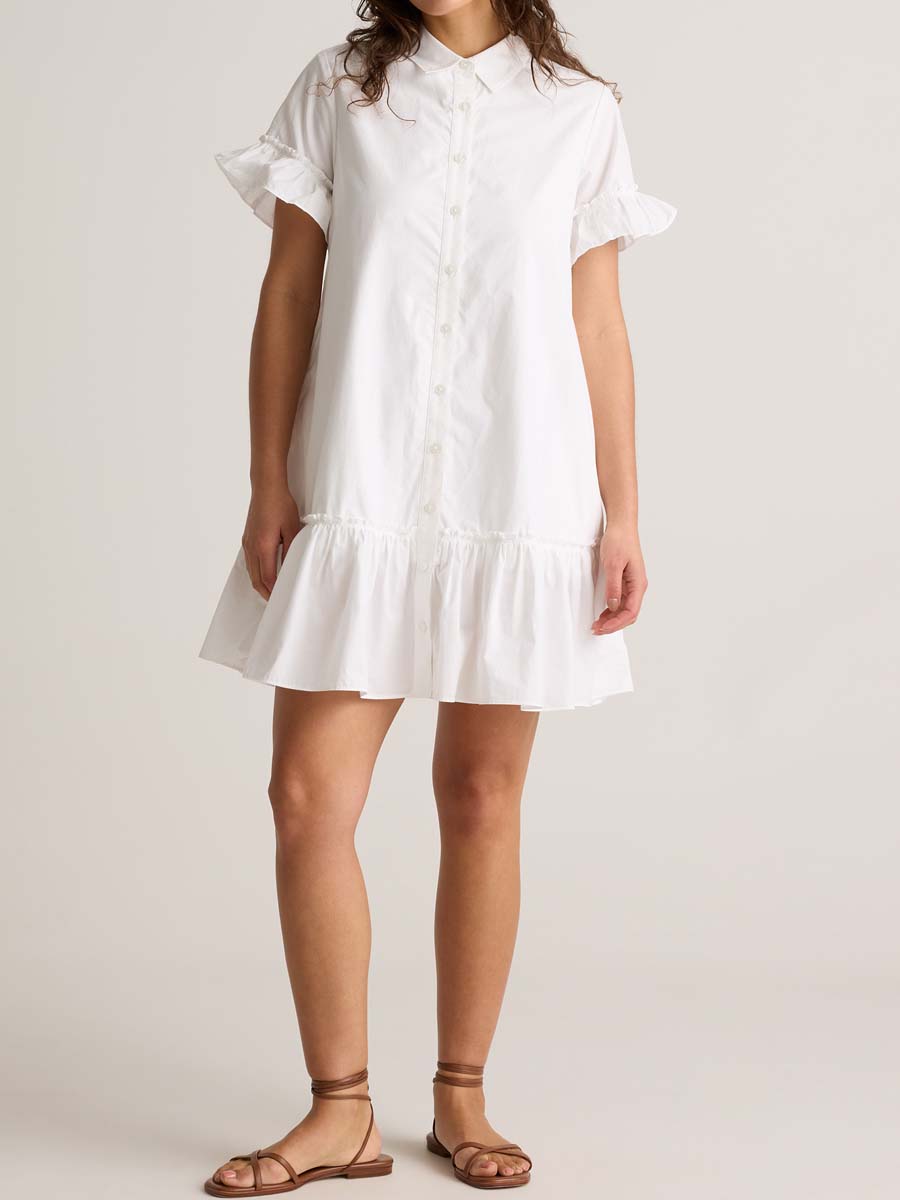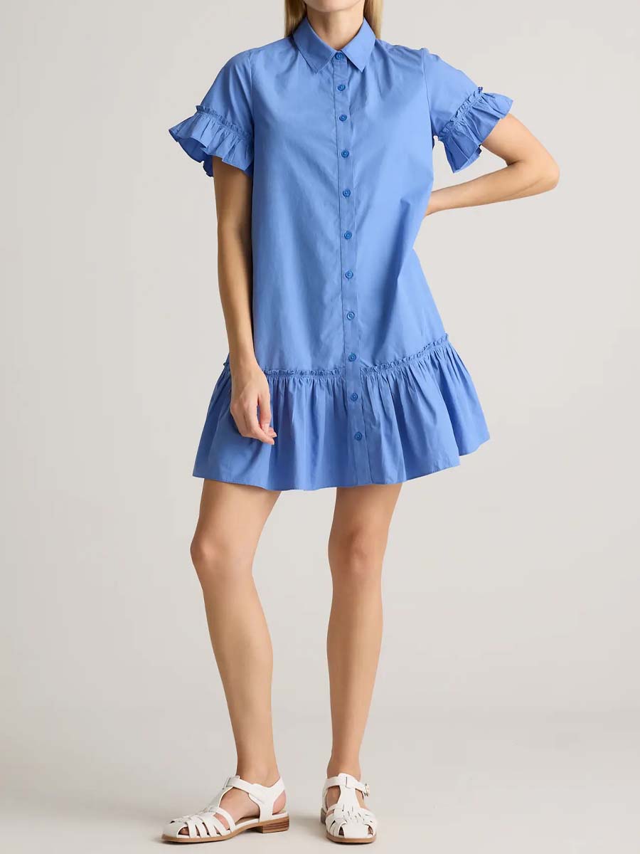 Elevate your wardrobe with our 100% Organic Cotton Poplin Short Sleeve Ruffle Shirt Dress—a perfect blend of style and comfort. Designed with functional side seam pockets for convenience, it features charming ruffled half sleeves that brings a breezy elegance to your everyday look.