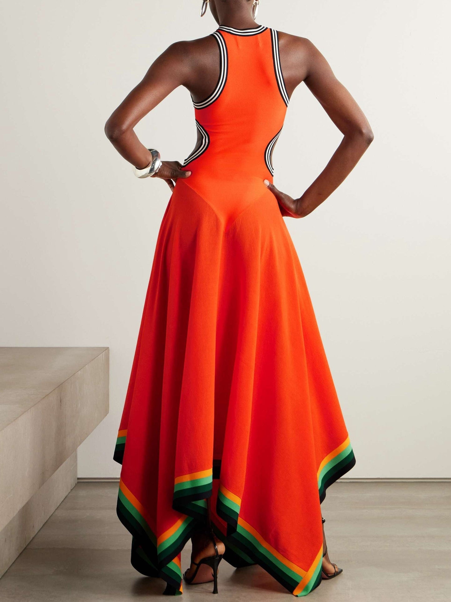 Striped Cutout Handkerchief-Hem Maxi Tank Dress