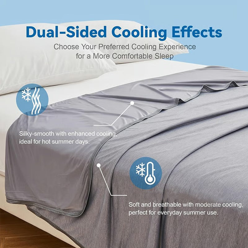 INNOVATIVE DOUBLE SIDED DESIGN: One side of the cool blanket features the upgraded Arc-cill 3.0 cool fabric, which has the ability to rapidly absorb and dissipate heat (12X faster than cotton), providing an immediate cooling sensation upon contact, and rayon from bamboo blend fabric on the other side for exceptional softness and excellent breathability. The two-sided design ensures year-round comfort.