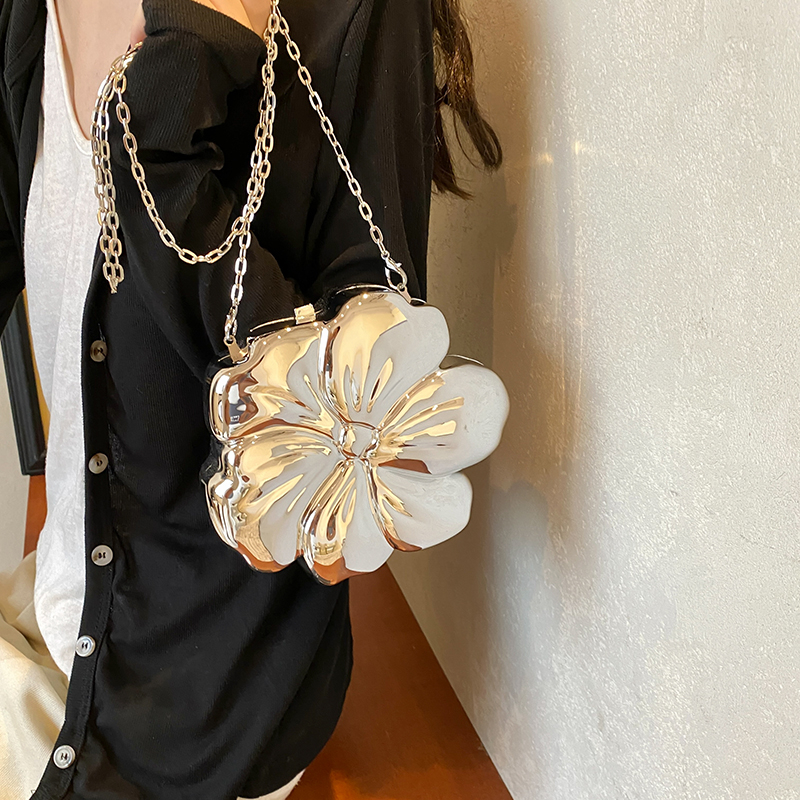 Introducing the Purse - a rose gold statement piece with a delicate flower design. The chain strap adds a touch of elegance, making it perfect for any occasion. Crafted with attention to detail, this purse exudes sophistication and charm. Elevate your style with this must-have accessory.