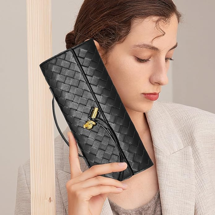 - Trendy Leather Woven Purse - This stylish clutch purse features a beautiful hand-woven look and classic style which is perfect match for both formal and casual outfits for various occasions