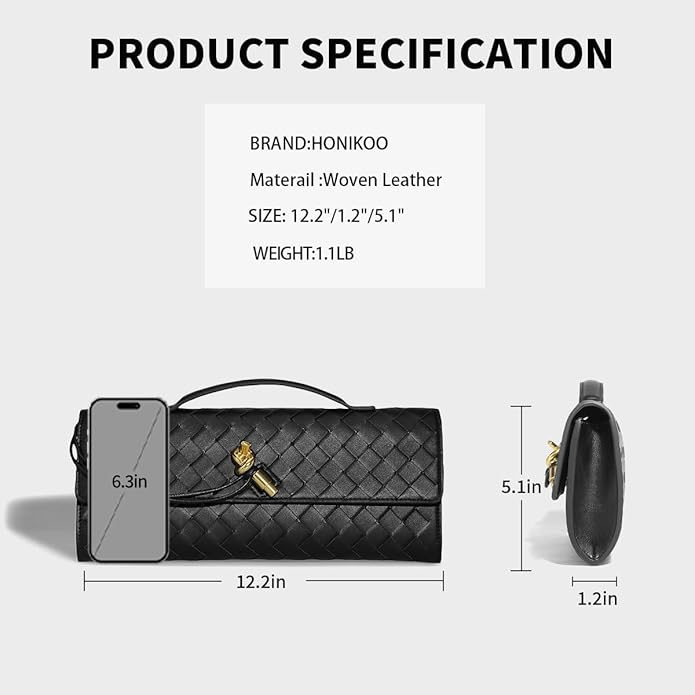 - Superior Quality Woven Material - With anti-scratch, tear-resistant and durable PU leather material, this evening bag is easy to clean, simply just wipe with water to keep this bag looking new