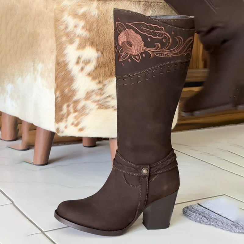 Vintage Embroidered Point-Toe Tall Boots