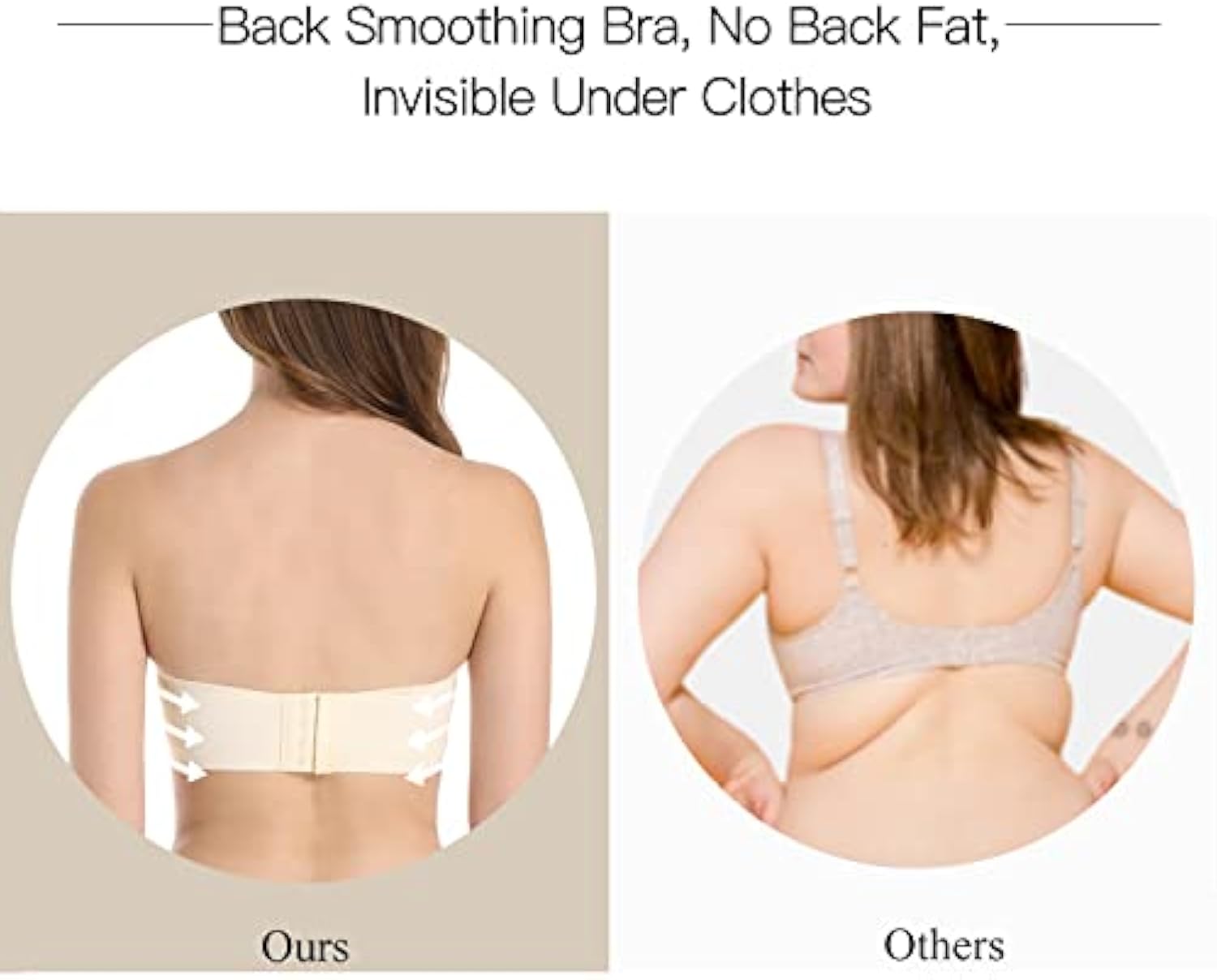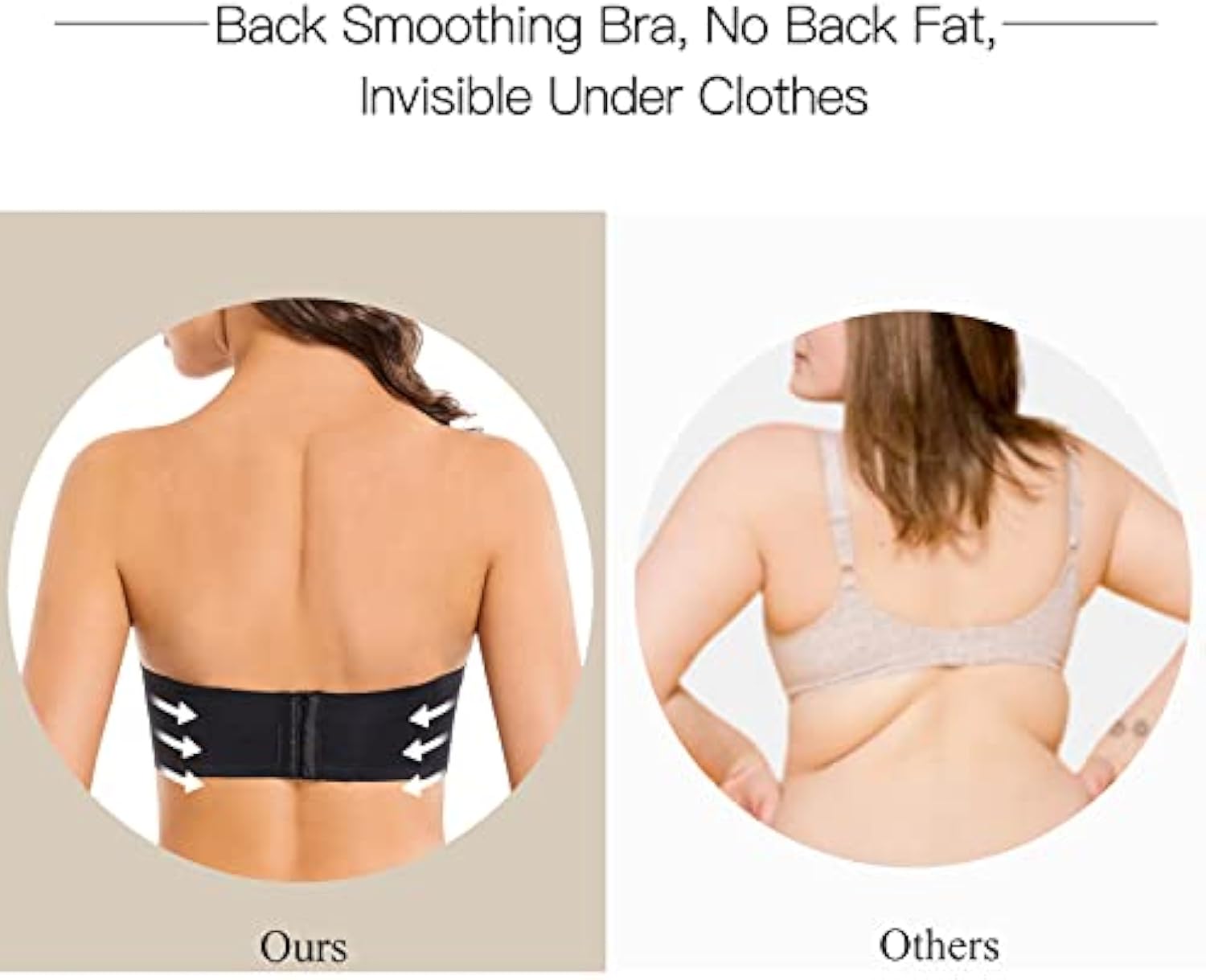 The strapless front buckle bra has a wide band that snugs around your rib cage, giving you ideal side support but not bringing tightness; The snug fit can prevent rolls and bulges, making it more comfortable to wear