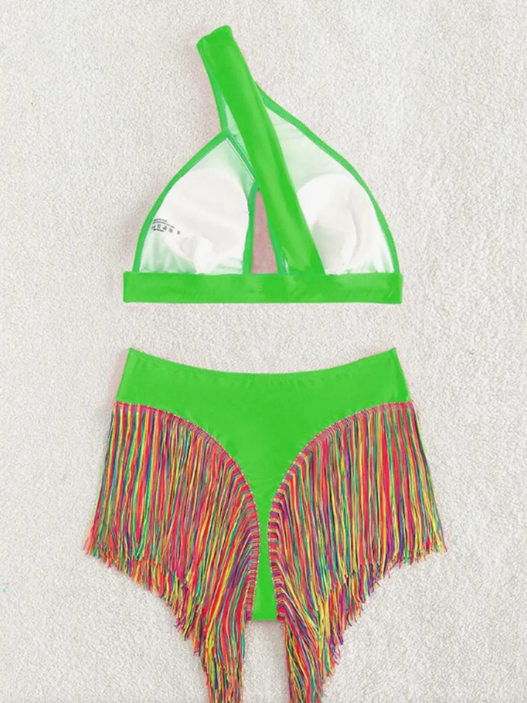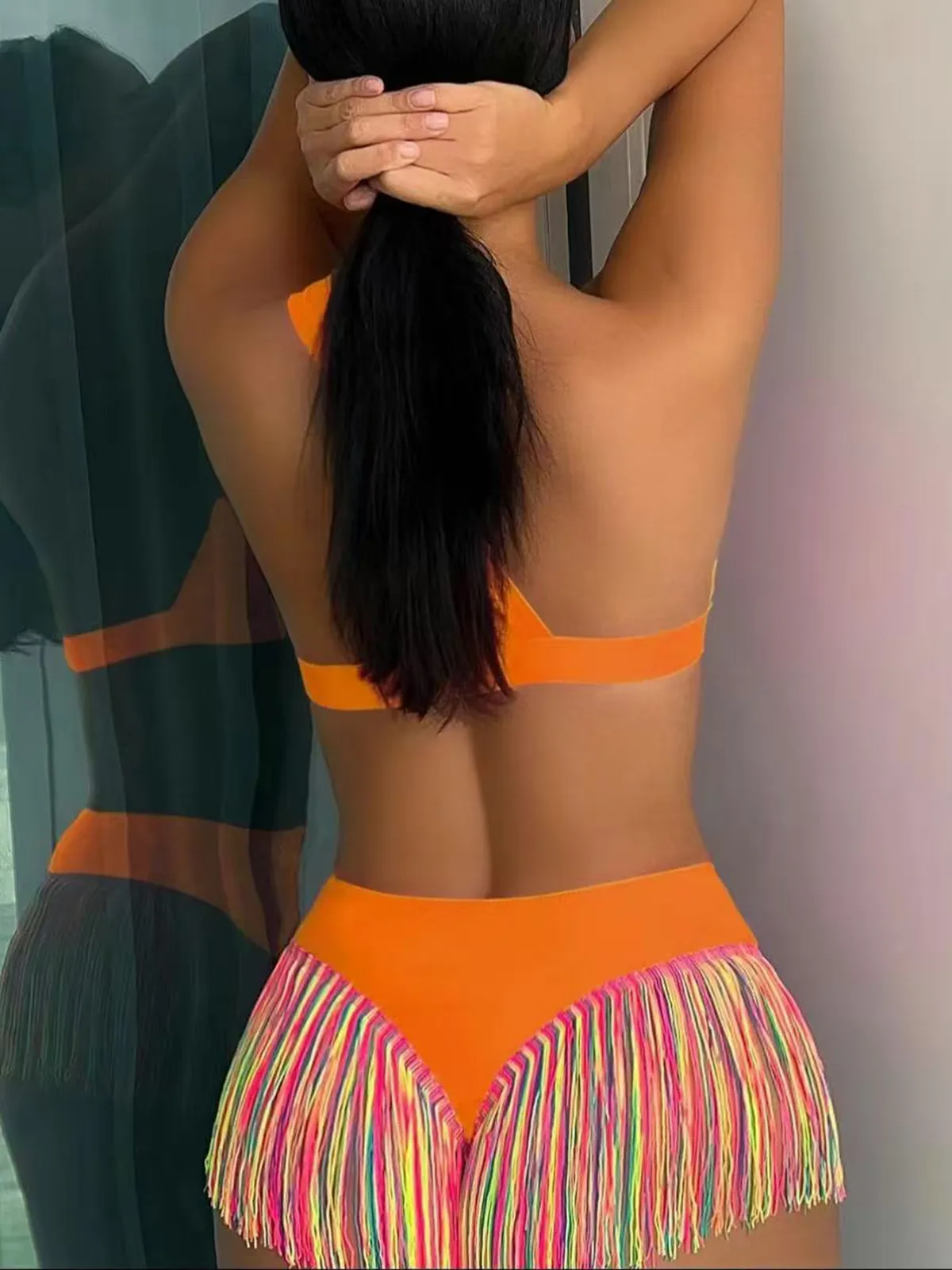 Women's Solid Color Fringe Hem Bikini Set Casual Stylish Chic Swimsuit