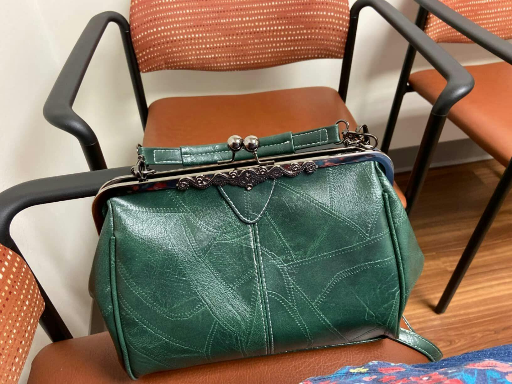 This purse is a hidden gem for the price. The strap is long enough to carry as a crossbody and then there is the little handle on top you can use also. It is large enough to carry all your essentials. I have wallet, checkbook, kindle, and I the regular odds and ends. The top snaps shut but if you overload the purse there will be a little gap in the opening. I got the green and since she admired mine, I ordered it in brown for my Mom.